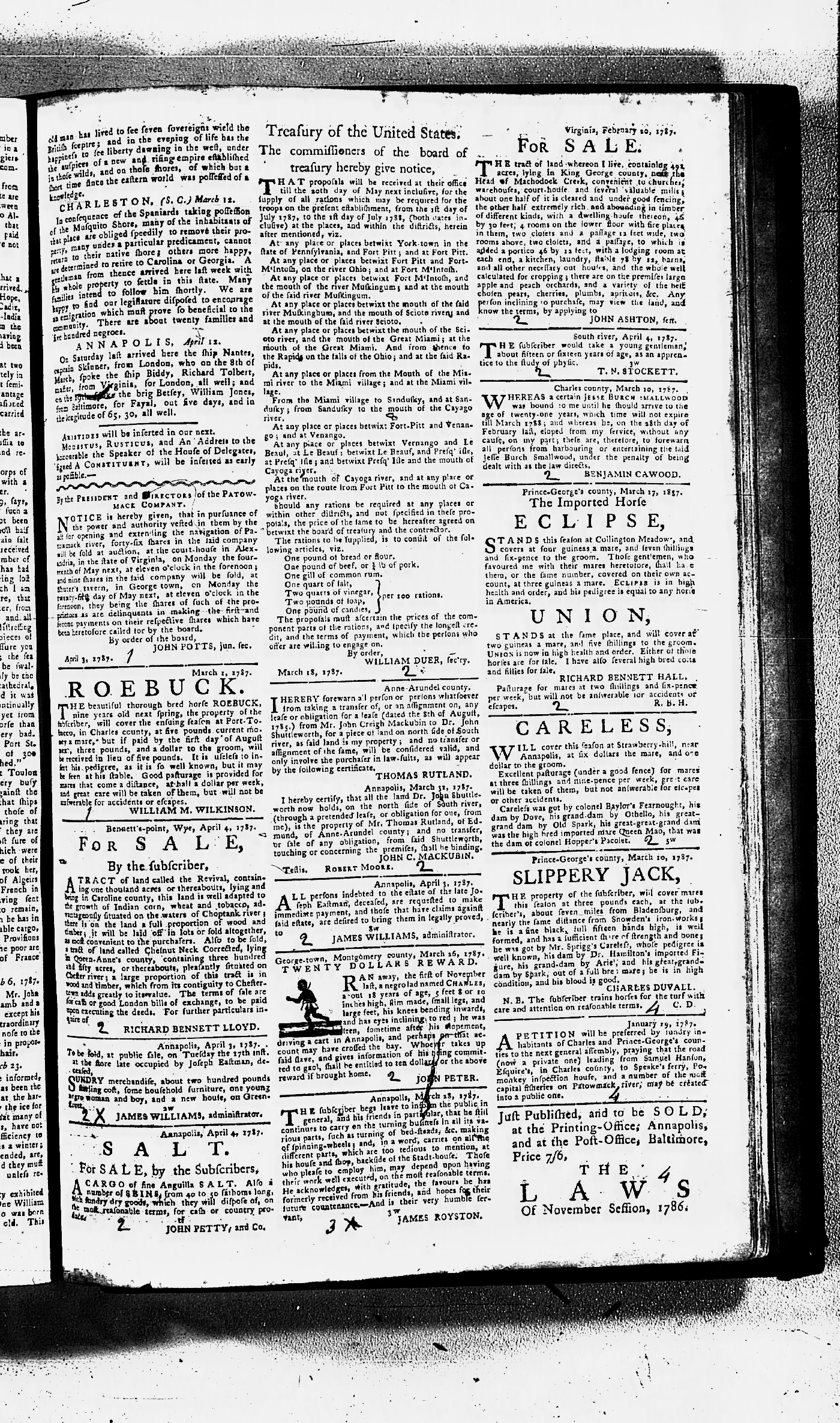 Maryland Gazette Collection MSA SC 2731 September 17, 1779 - June 28, 1787 M 1283 A Publication of the Archives of Maryland Online Image 1431 Enlarge and print image (3M) |