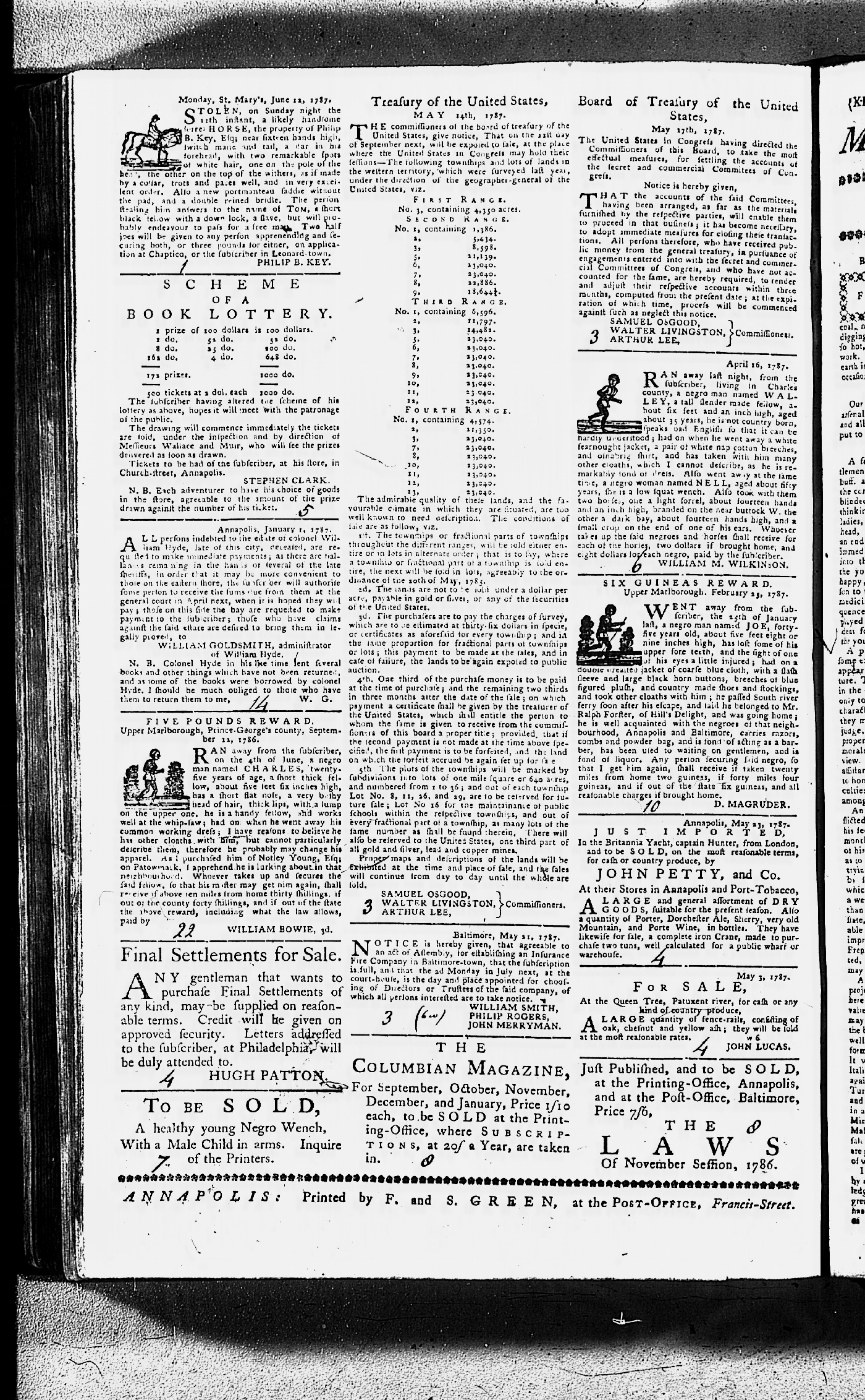 Maryland Gazette Collection MSA SC 2731 September 17, 1779 - June 28, 1787 M 1283 A Publication of the Archives of Maryland Online Image 1480 Enlarge and print image (3M) |