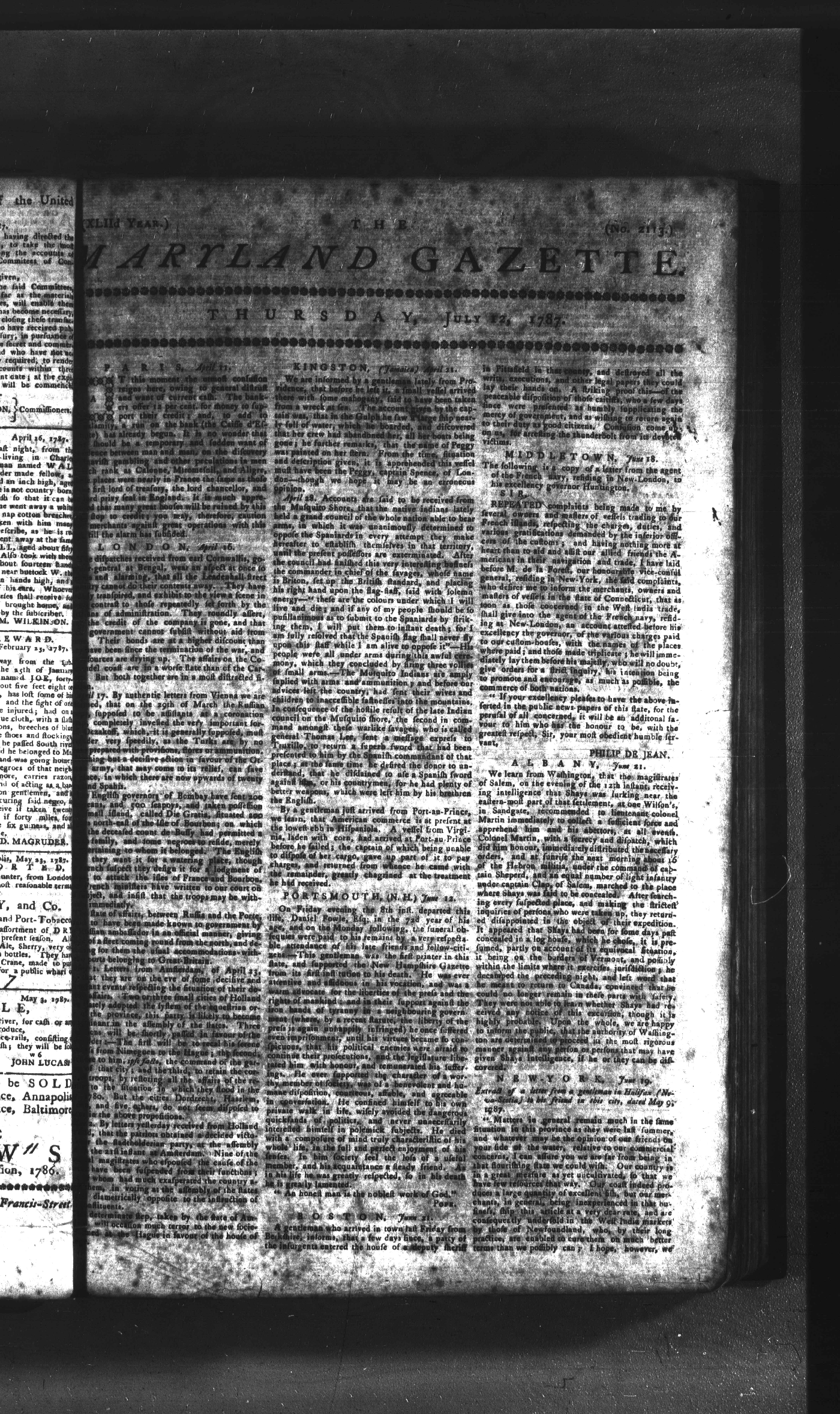 Maryland Gazette Collection (MSA SC 2731) July 5, 1787 - December 25, 1794 M 1284 A Publication of the Archives of Maryland Online Image No: 5 Enlarge and print image (2M) |