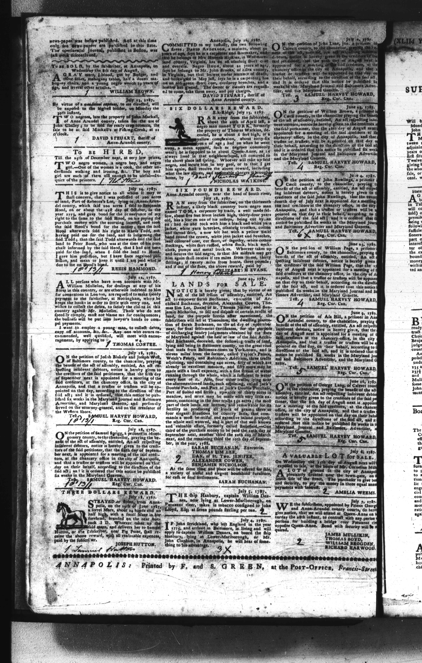 Maryland Gazette Collection (MSA SC 2731) July 5, 1787 - December 25, 1794 M 1284 A Publication of the Archives of Maryland Online Image No: 12 Enlarge and print image (2M) |