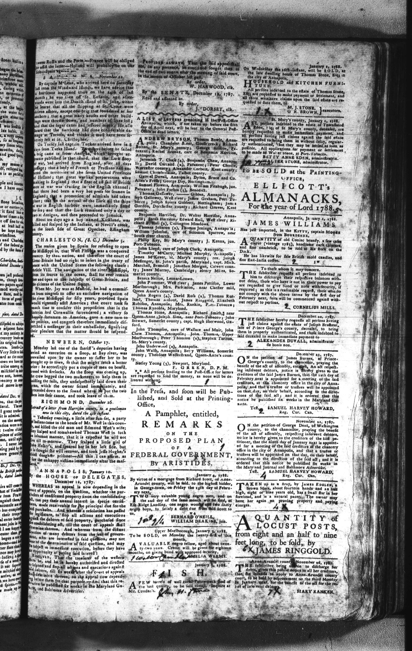 Maryland Gazette Collection (MSA SC 2731) July 5, 1787 - December 25, 1794 M 1284 A Publication of the Archives of Maryland Online Image No: 123 Enlarge and print image (2M) |