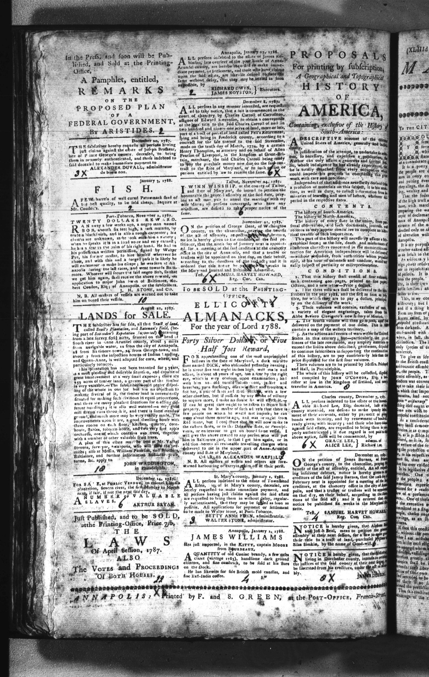 Maryland Gazette Collection (MSA SC 2731) July 5, 1787 - December 25, 1794 M 1284 A Publication of the Archives of Maryland Online Image No: 132 Enlarge and print image (2M) |