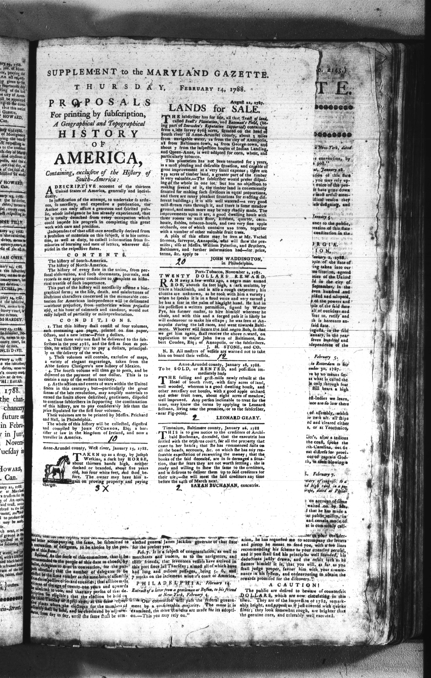Maryland Gazette Collection (MSA SC 2731) July 5, 1787 - December 25, 1794 M 1284 A Publication of the Archives of Maryland Online Image No: 141 Enlarge and print image (2M) |