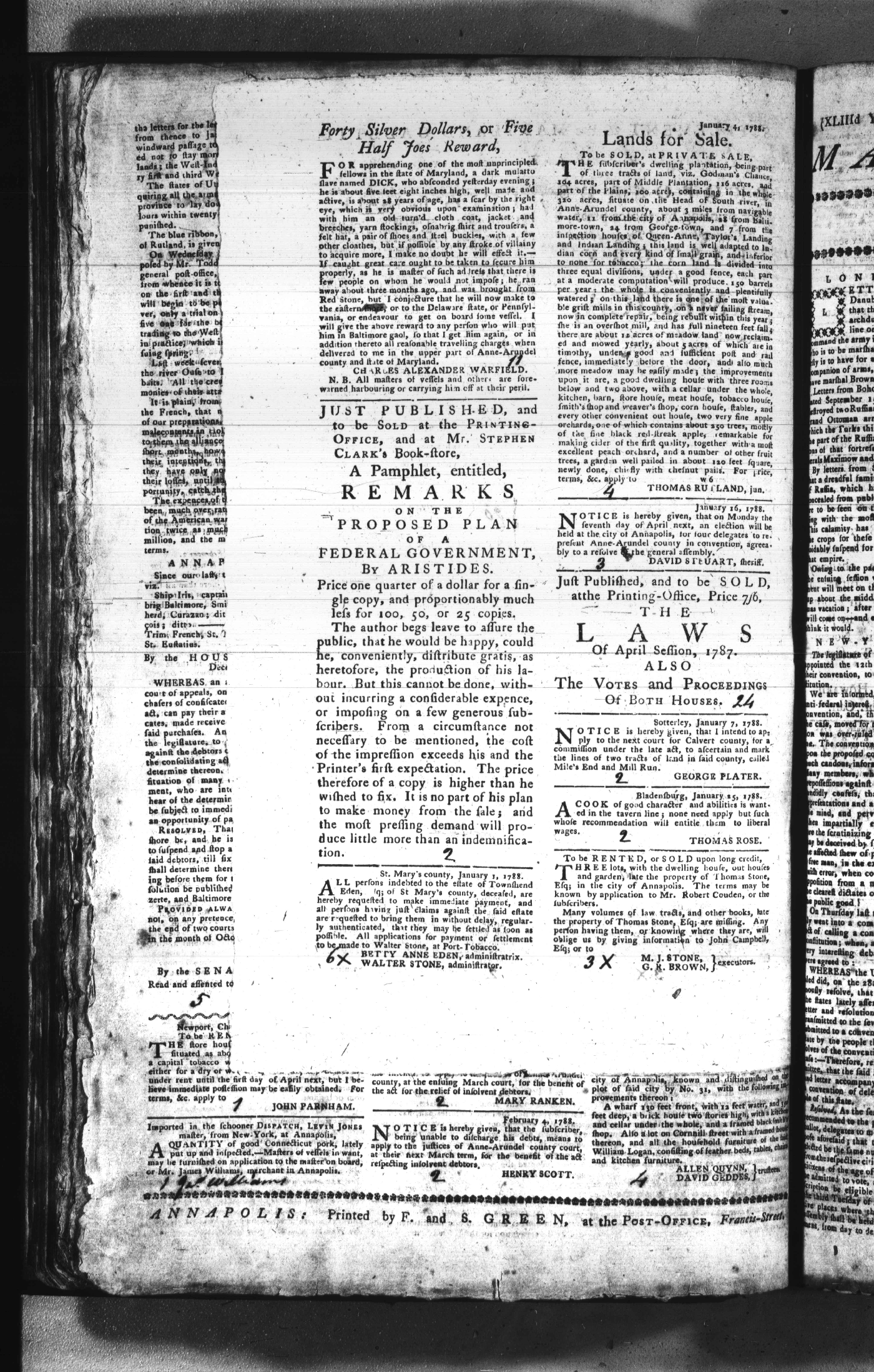 Maryland Gazette Collection (MSA SC 2731) July 5, 1787 - December 25, 1794 M 1284 A Publication of the Archives of Maryland Online Image No: 142 Enlarge and print image (2M) |
