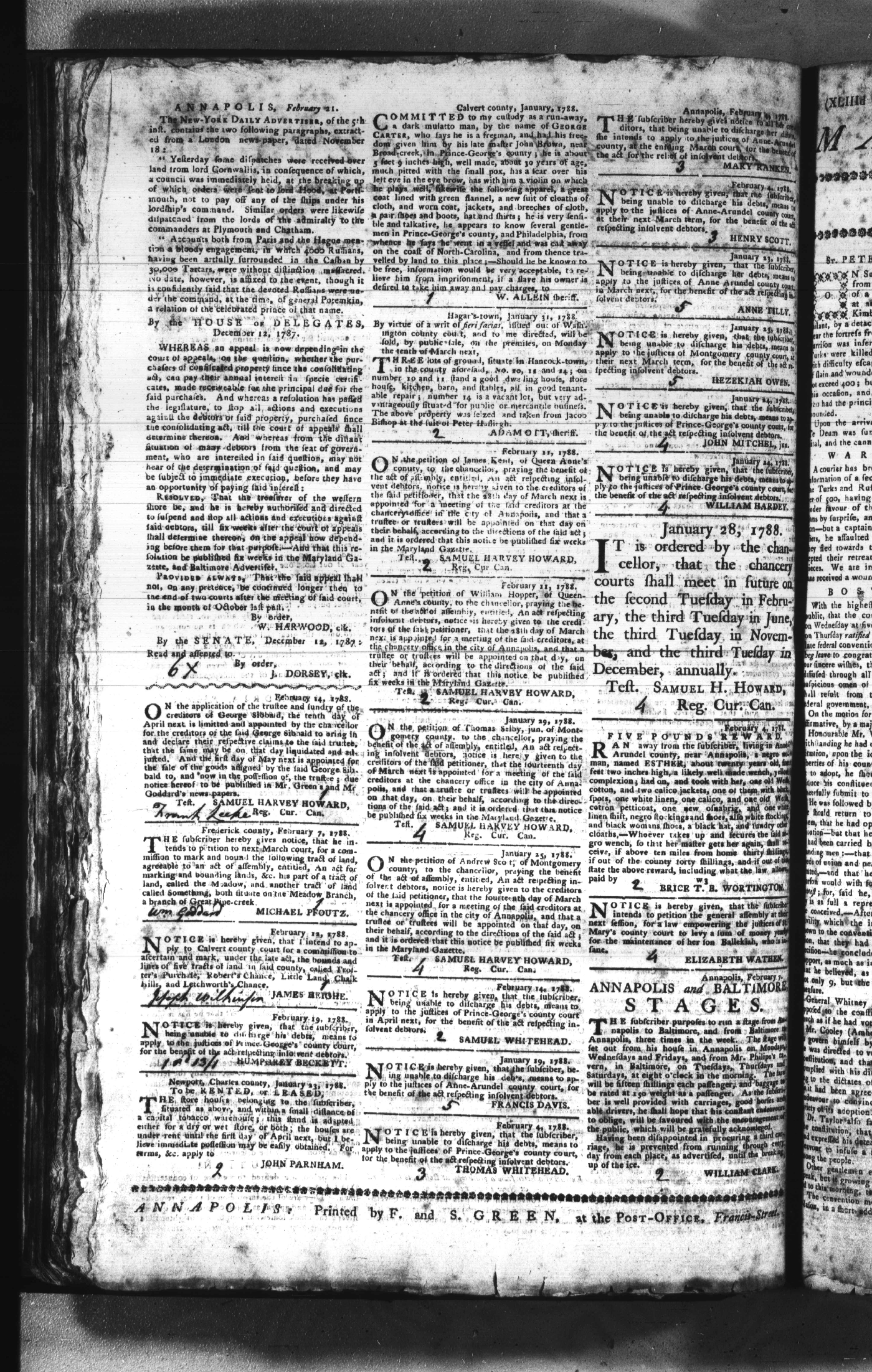 Maryland Gazette Collection (MSA SC 2731) July 5, 1787 - December 25, 1794 M 1284 A Publication of the Archives of Maryland Online Image No: 144 Enlarge and print image (2M) |