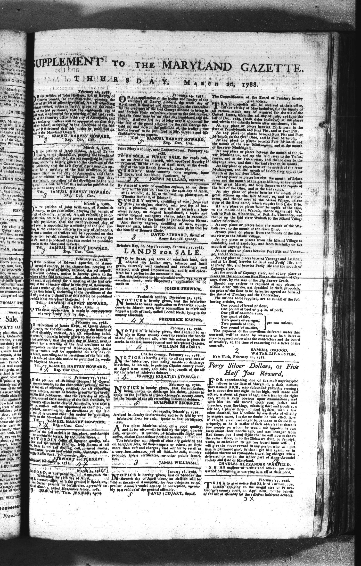 Maryland Gazette Collection (MSA SC 2731) July 5, 1787 - December 25, 1794 M 1284 A Publication of the Archives of Maryland Online Image No: 157 Enlarge and print image (2M) |