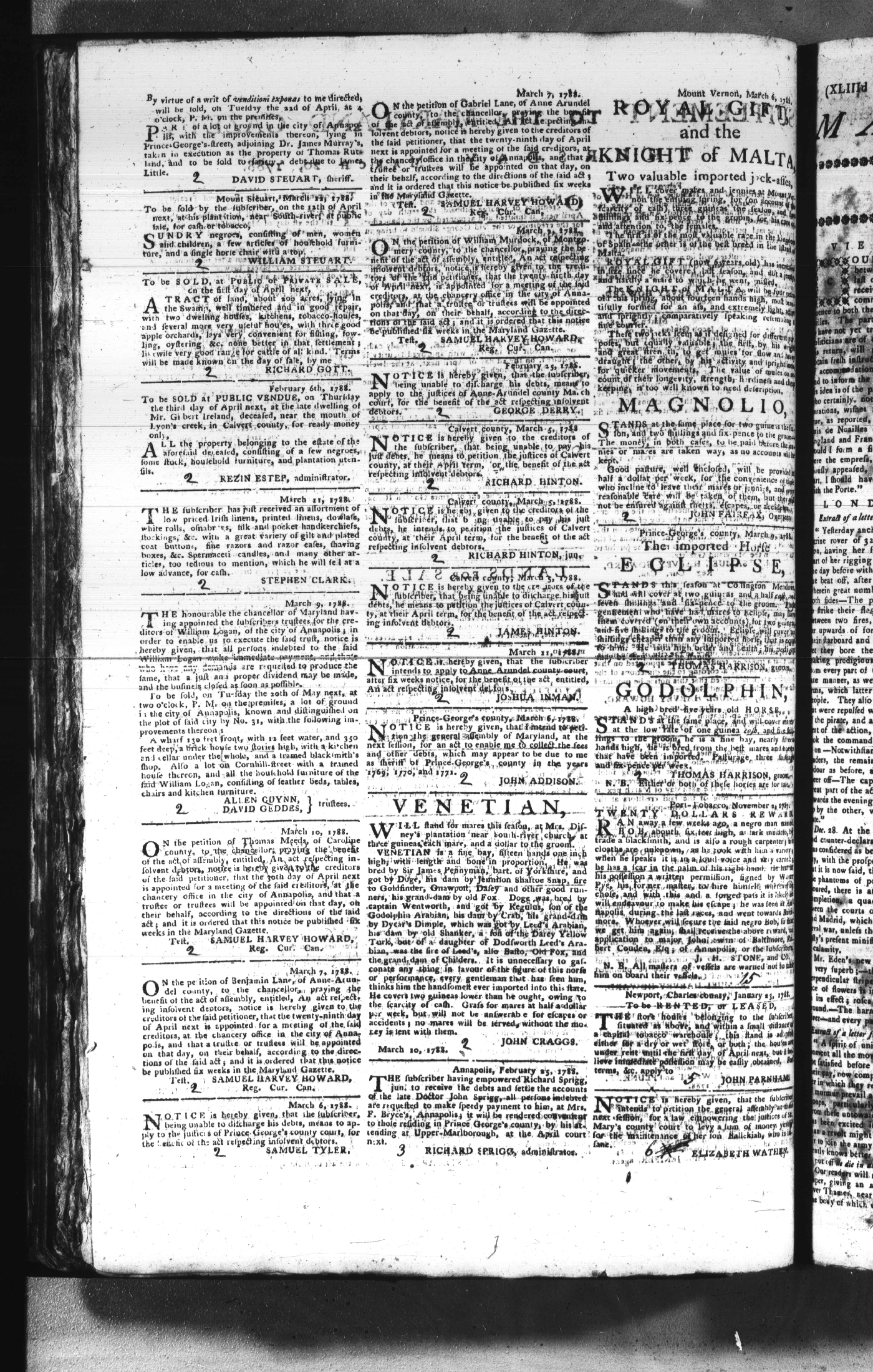 Maryland Gazette Collection (MSA SC 2731) July 5, 1787 - December 25, 1794 M 1284 A Publication of the Archives of Maryland Online Image No: 158 Enlarge and print image (2M) |