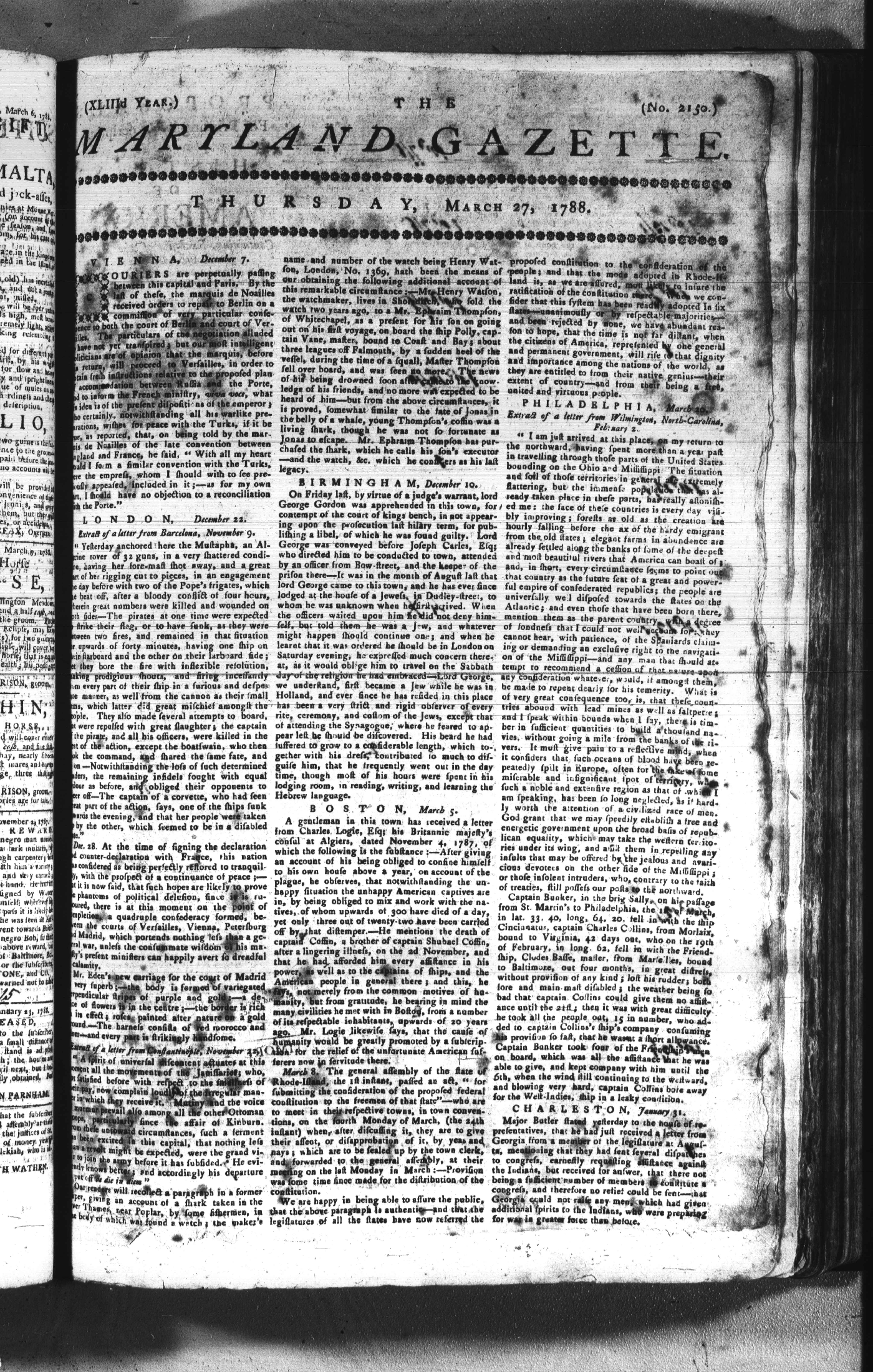 Maryland Gazette Collection (MSA SC 2731) July 5, 1787 - December 25, 1794 M 1284 A Publication of the Archives of Maryland Online Image No: 159 Enlarge and print image (2M) |