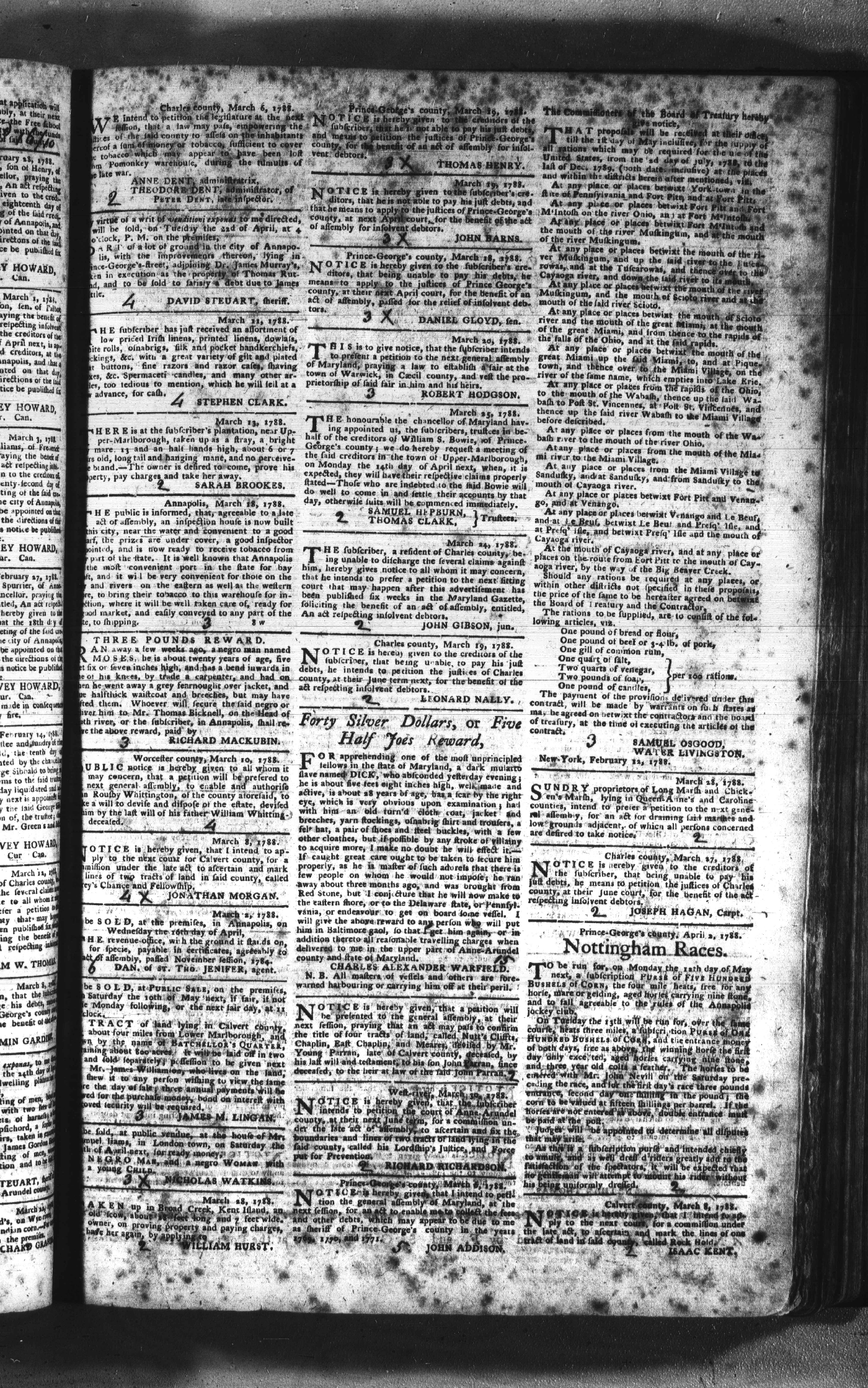 Maryland Gazette Collection (MSA SC 2731) July 5, 1787 - December 25, 1794 M 1284 A Publication of the Archives of Maryland Online Image No: 169 Enlarge and print image (2M) |