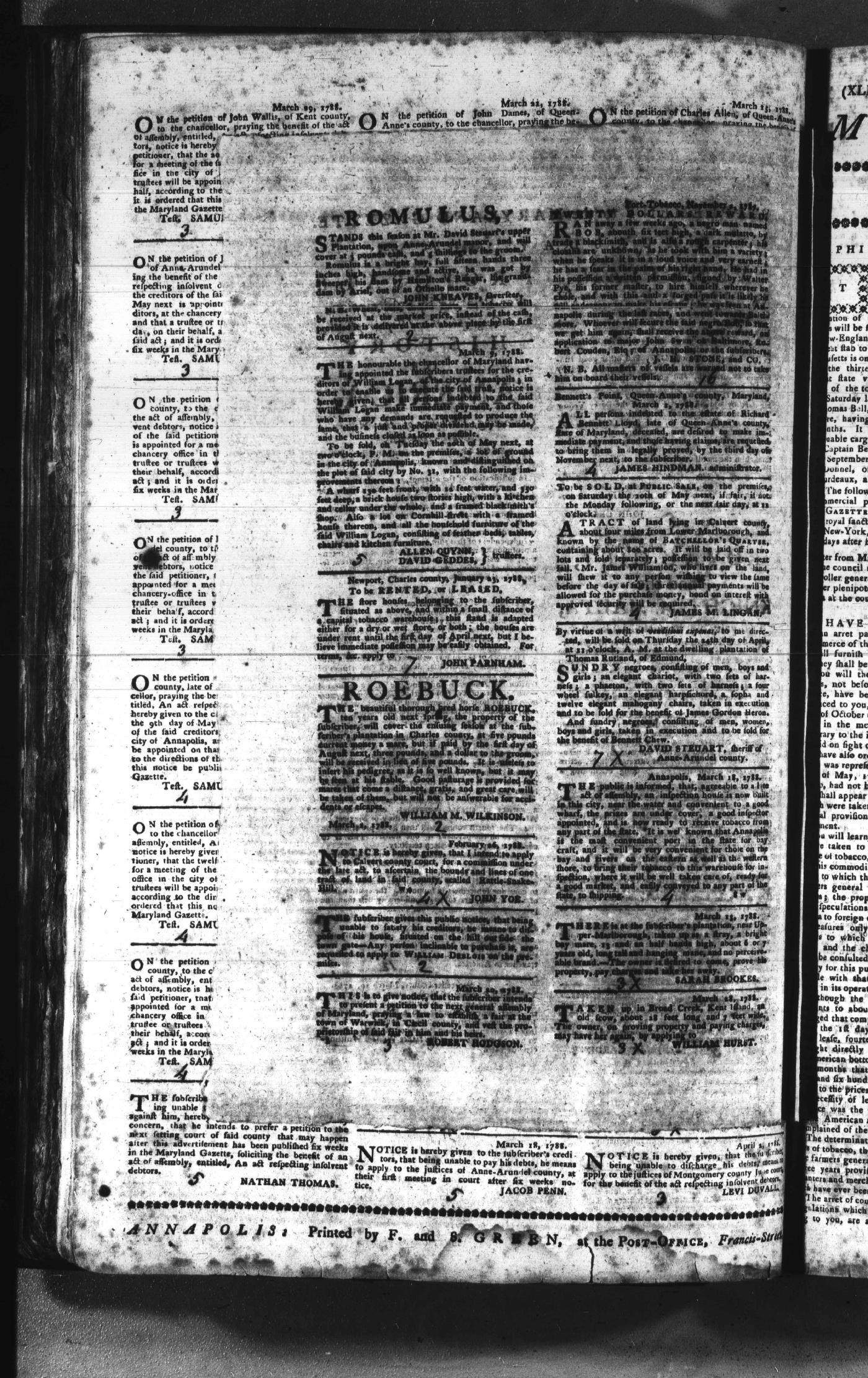 Maryland Gazette Collection (MSA SC 2731) July 5, 1787 - December 25, 1794 M 1284 A Publication of the Archives of Maryland Online Image No: 176 Enlarge and print image (2M) |