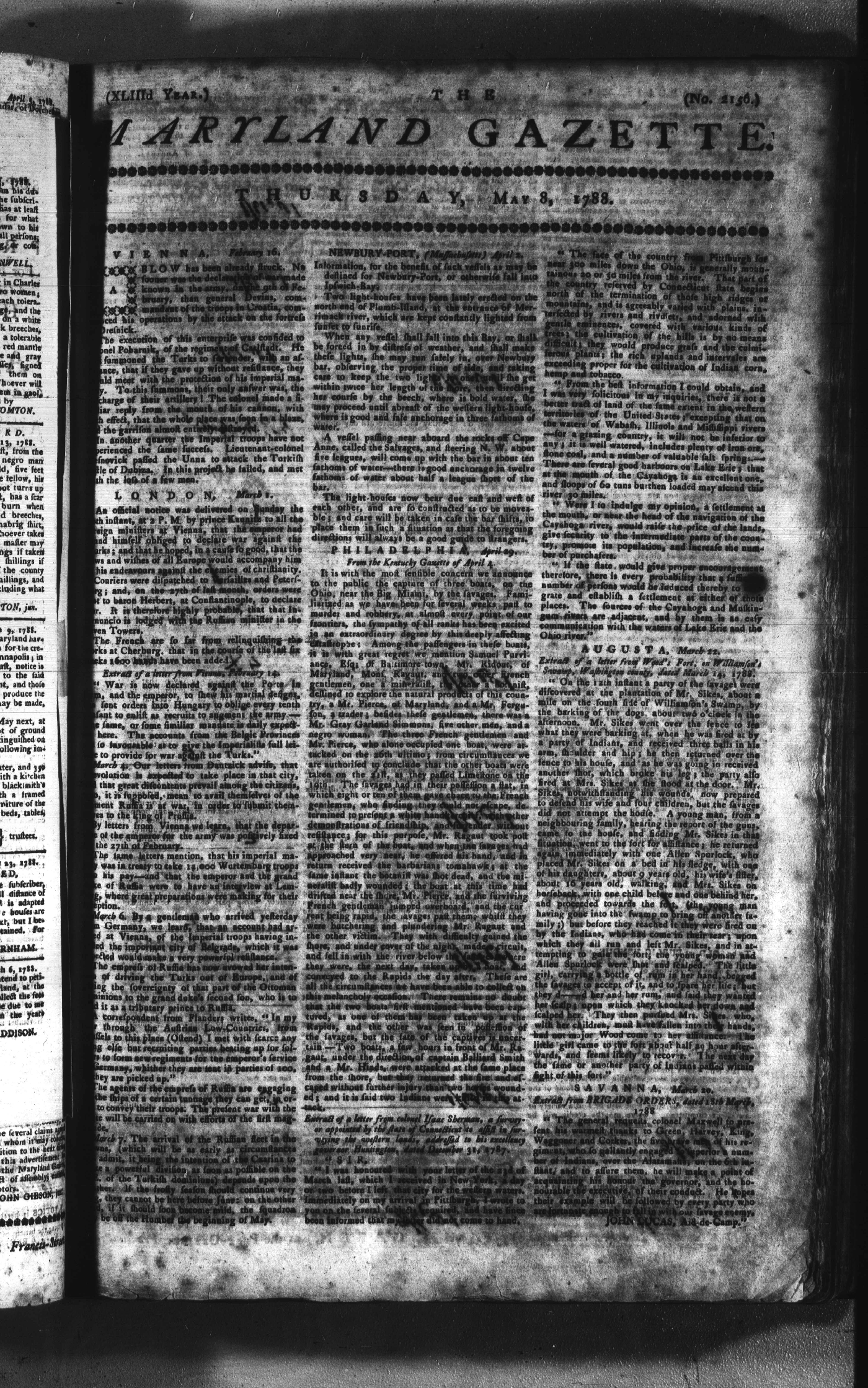 Maryland Gazette Collection (MSA SC 2731) July 5, 1787 - December 25, 1794 M 1284 A Publication of the Archives of Maryland Online Image No: 187 Enlarge and print image (2M) |