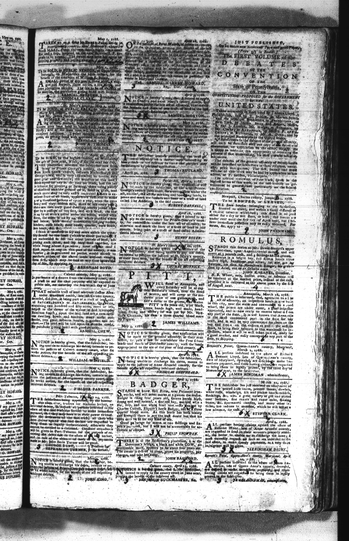 Maryland Gazette Collection (MSA SC 2731) July 5, 1787 - December 25, 1794 M 1284 A Publication of the Archives of Maryland Online Image No: 195 Enlarge and print image (2M) |