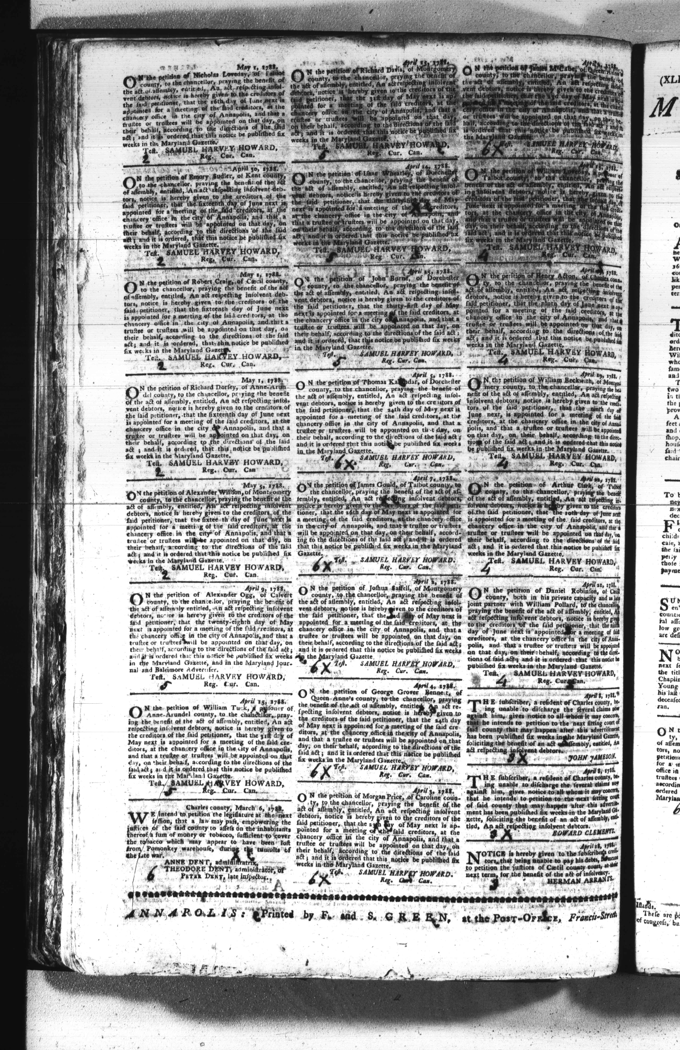 Maryland Gazette Collection (MSA SC 2731) July 5, 1787 - December 25, 1794 M 1284 A Publication of the Archives of Maryland Online Image No: 196 Enlarge and print image (2M) |