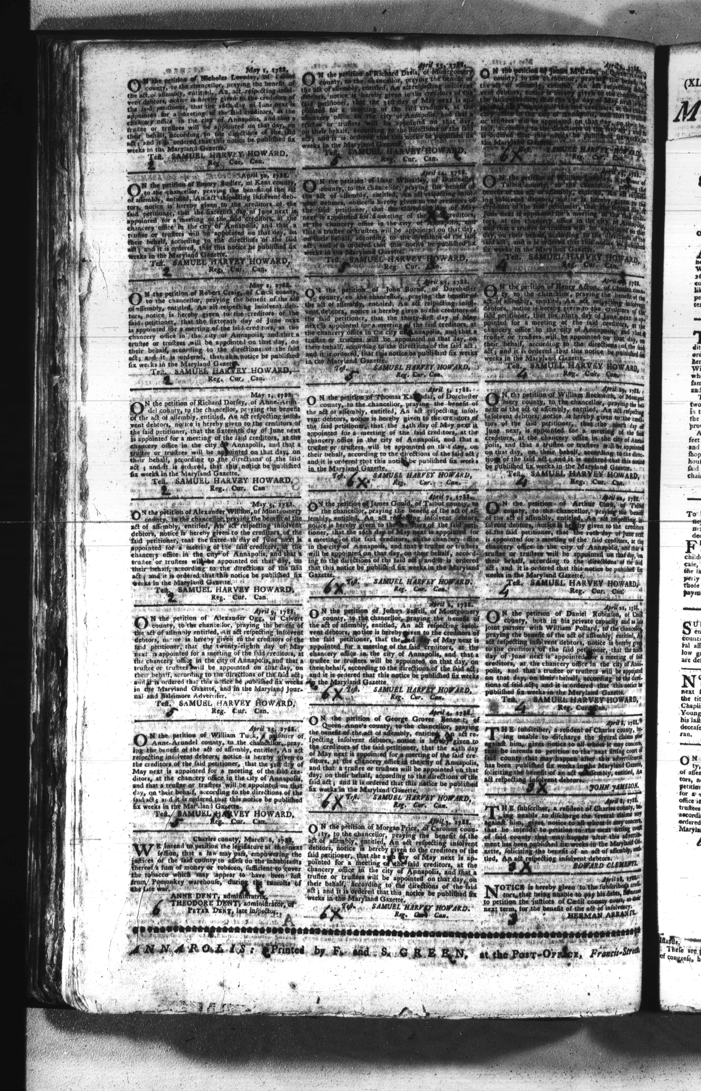 Maryland Gazette Collection (MSA SC 2731) July 5, 1787 - December 25, 1794 M 1284 A Publication of the Archives of Maryland Online Image No: 198 Enlarge and print image (2M) |