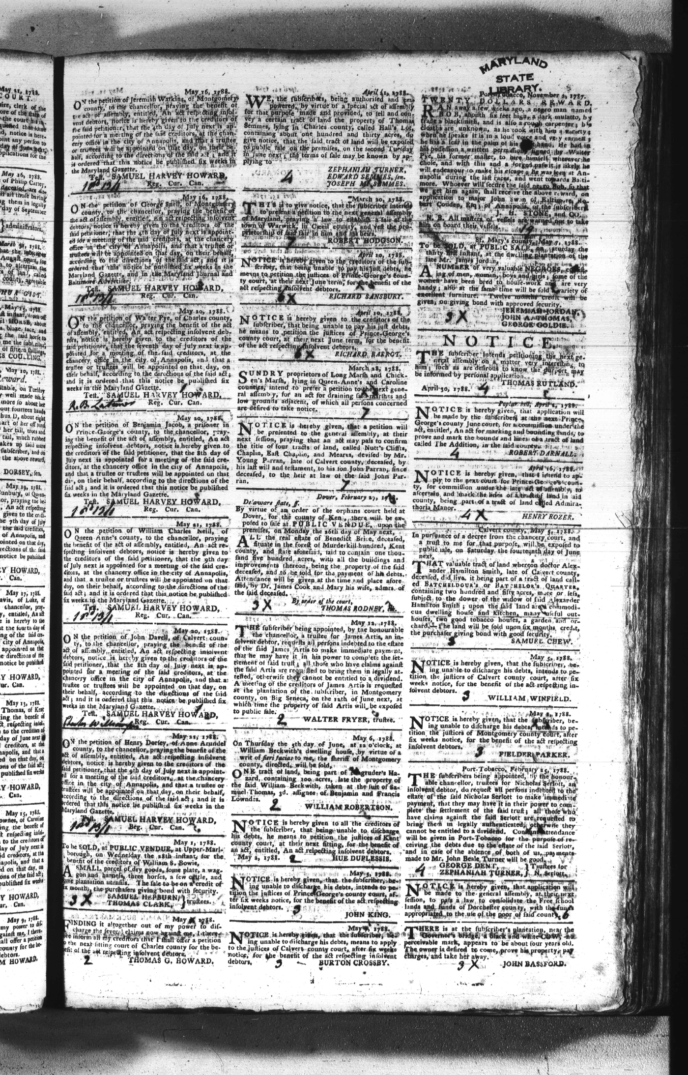 Maryland Gazette Collection (MSA SC 2731) July 5, 1787 - December 25, 1794 M 1284 A Publication of the Archives of Maryland Online Image No: 203 Enlarge and print image (2M) |