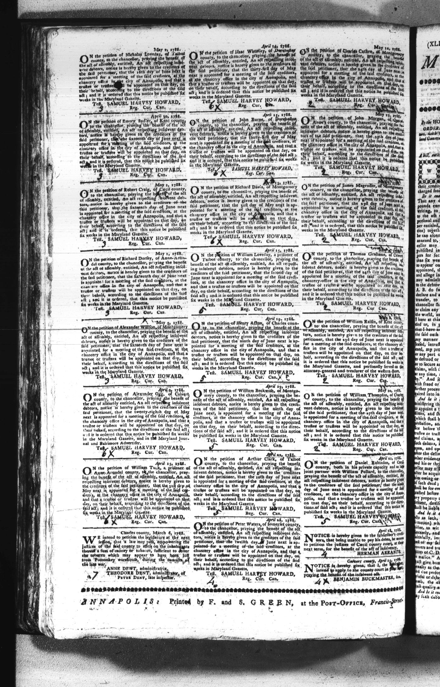 Maryland Gazette Collection (MSA SC 2731) July 5, 1787 - December 25, 1794 M 1284 A Publication of the Archives of Maryland Online Image No: 204 Enlarge and print image (2M) |