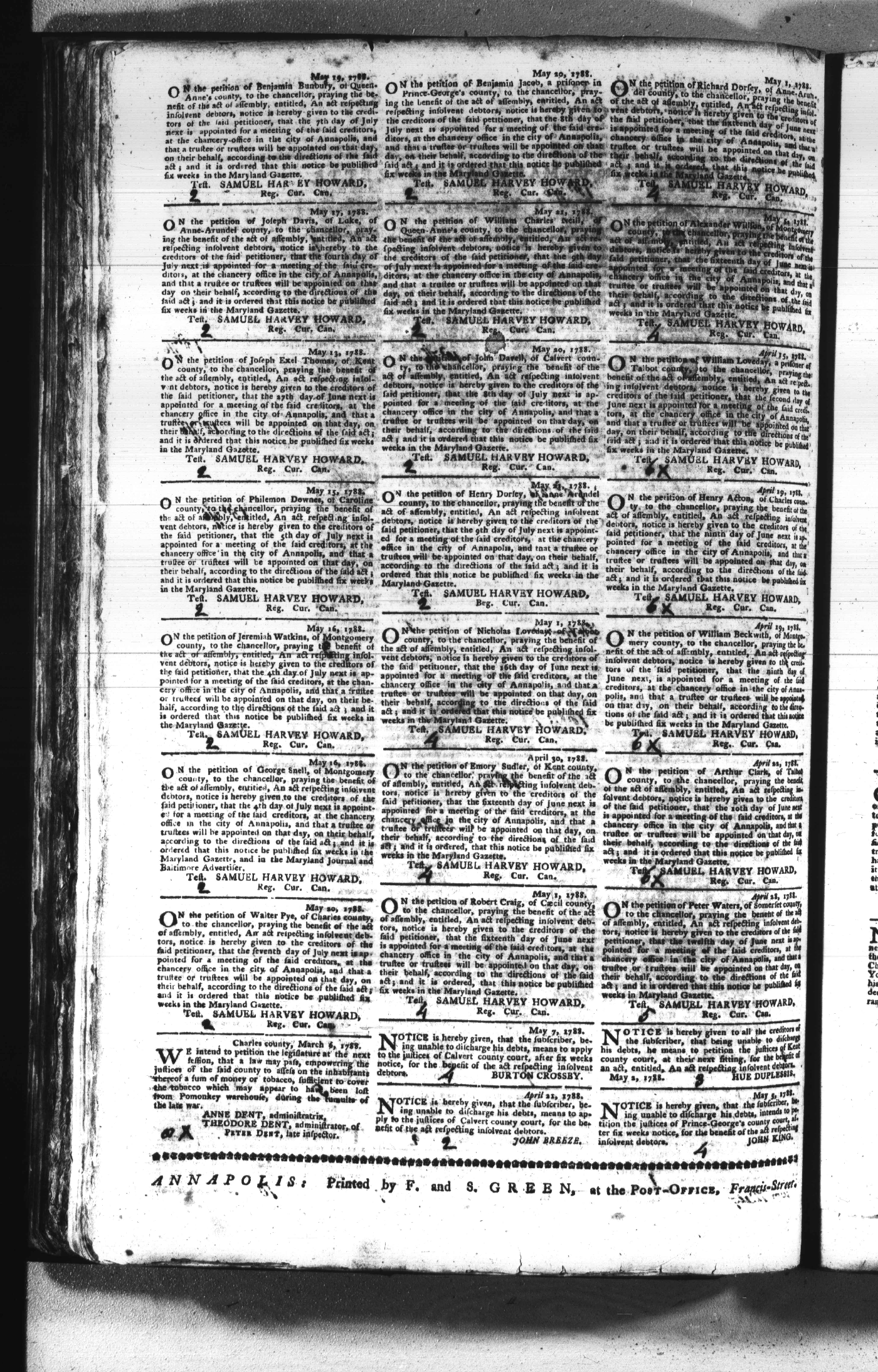 Maryland Gazette Collection (MSA SC 2731) July 5, 1787 - December 25, 1794 M 1284 A Publication of the Archives of Maryland Online Image No: 208 Enlarge and print image (2M) |