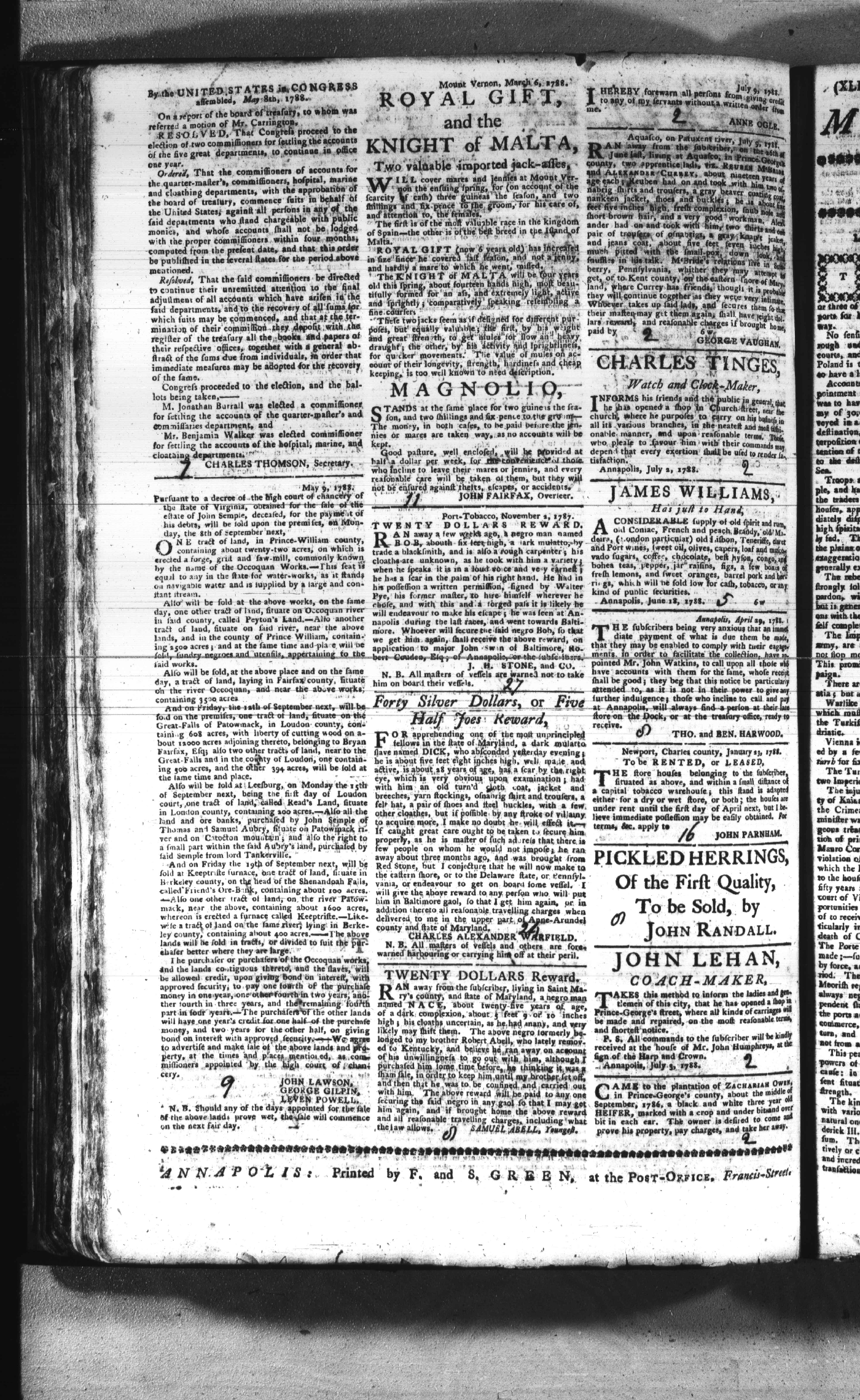 Maryland Gazette Collection (MSA SC 2731) July 5, 1787 - December 25, 1794 M 1284 A Publication of the Archives of Maryland Online Image No: 246 Enlarge and print image (2M) |
