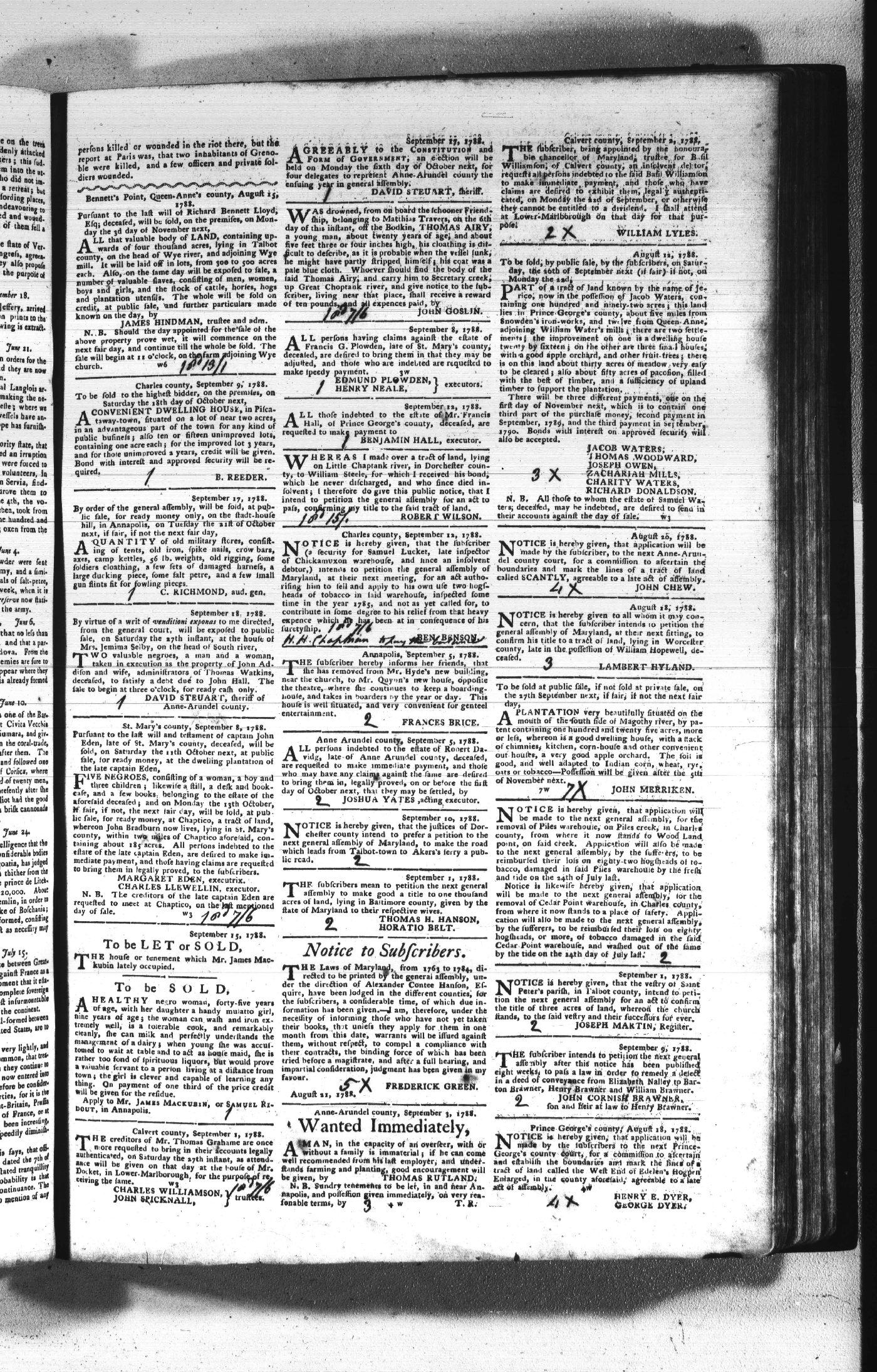 Maryland Gazette Collection (MSA SC 2731) July 5, 1787 - December 25, 1794 M 1284 A Publication of the Archives of Maryland Online Image No: 287 Enlarge and print image (2M) |