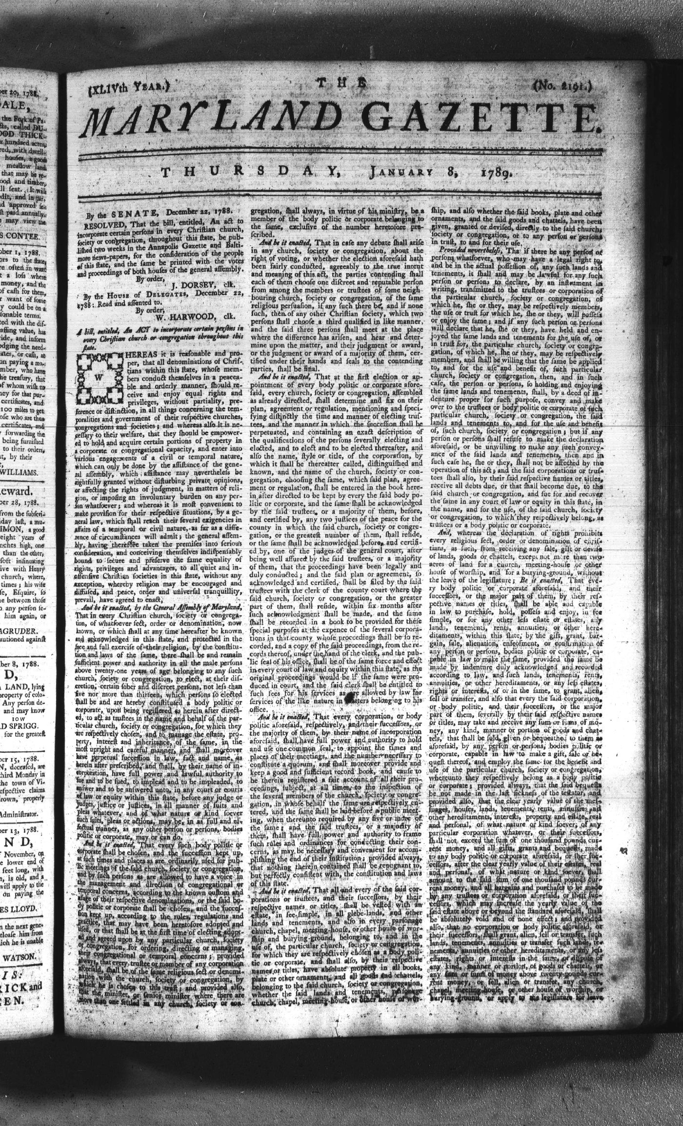 Maryland Gazette Collection (MSA SC 2731) July 5, 1787 - December 25, 1794 M 1284 A Publication of the Archives of Maryland Online Image No: 355 Enlarge and print image (2M) |