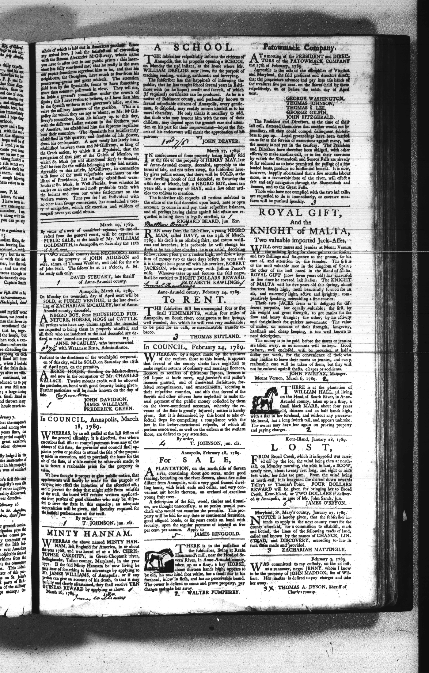 Maryland Gazette Collection (MSA SC 2731) July 5, 1787 - December 25, 1794 M 1284 A Publication of the Archives of Maryland Online Image No: 401 Enlarge and print image (2M) |