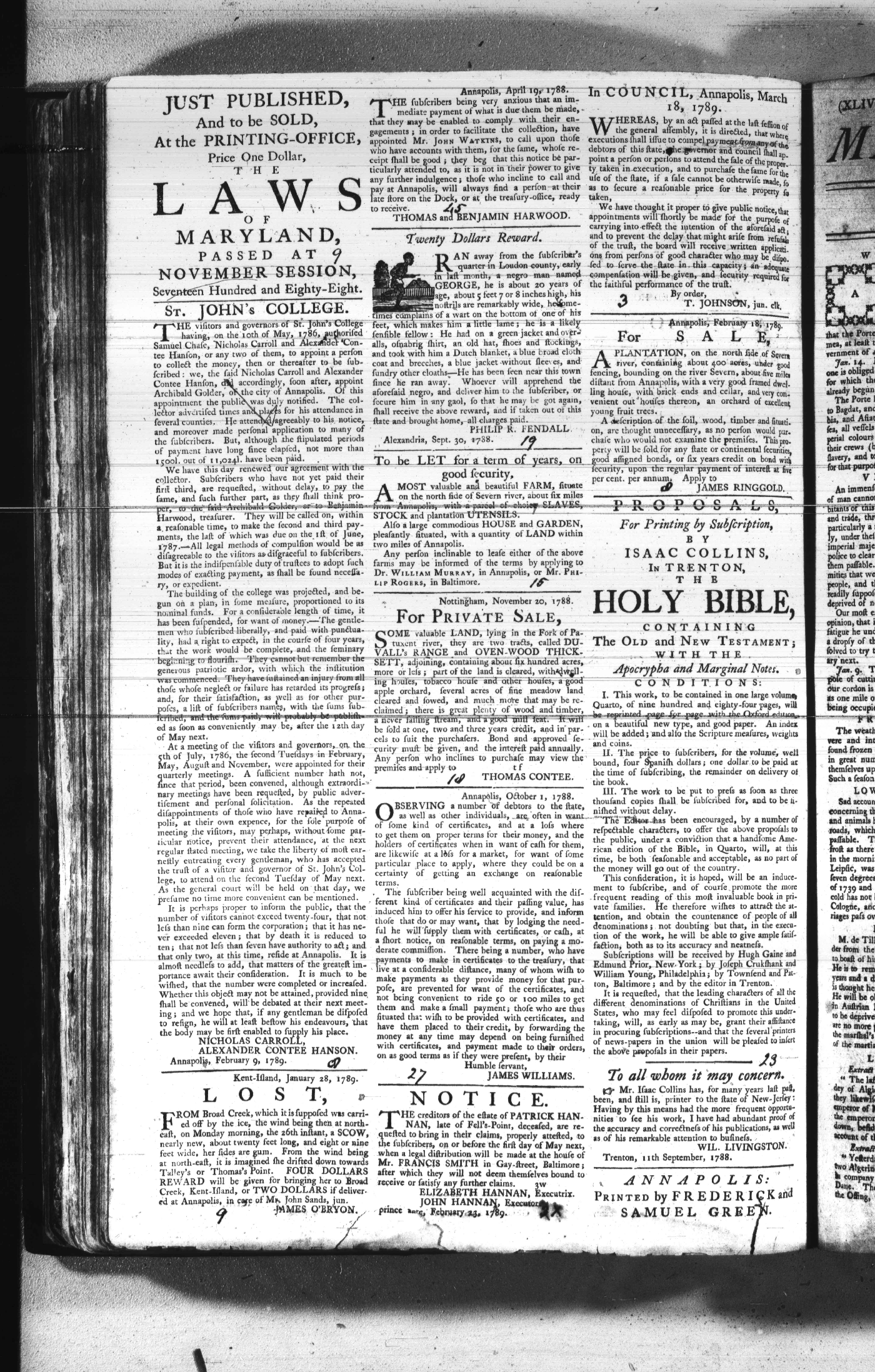 Maryland Gazette Collection (MSA SC 2731) July 5, 1787 - December 25, 1794 M 1284 A Publication of the Archives of Maryland Online Image No: 418 Enlarge and print image (2M) |