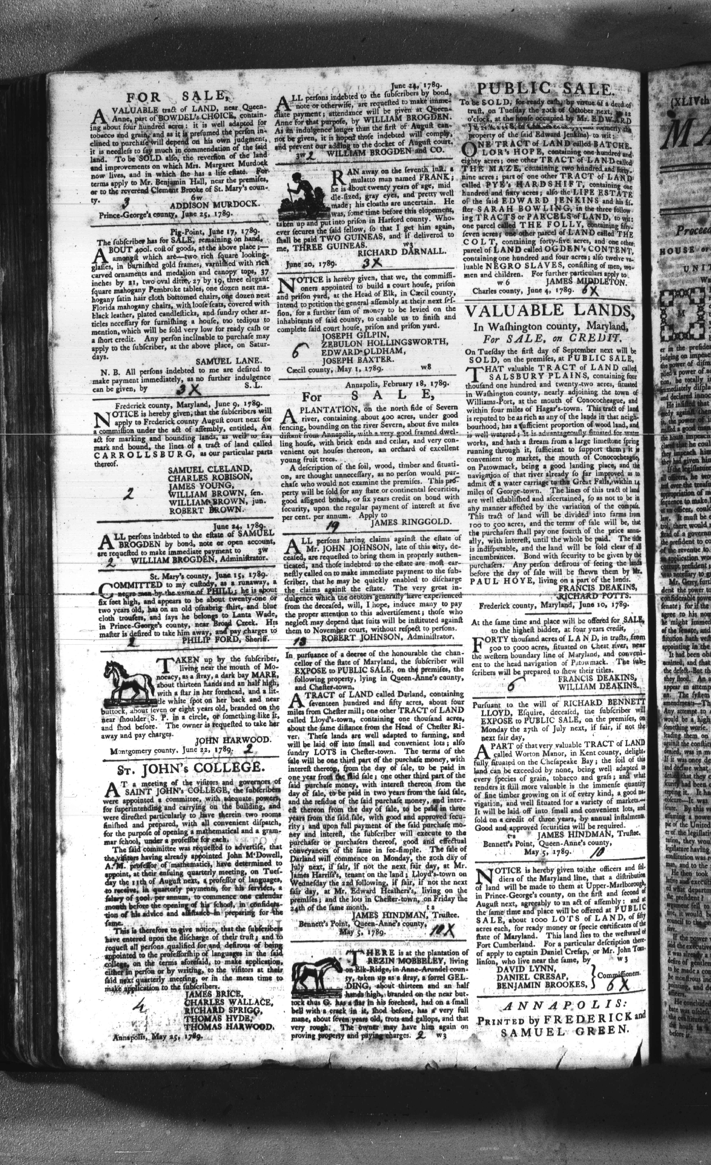 Maryland Gazette Collection (MSA SC 2731) July 5, 1787 - December 25, 1794 M 1284 A Publication of the Archives of Maryland Online Image No: 480 Enlarge and print image (2M) |