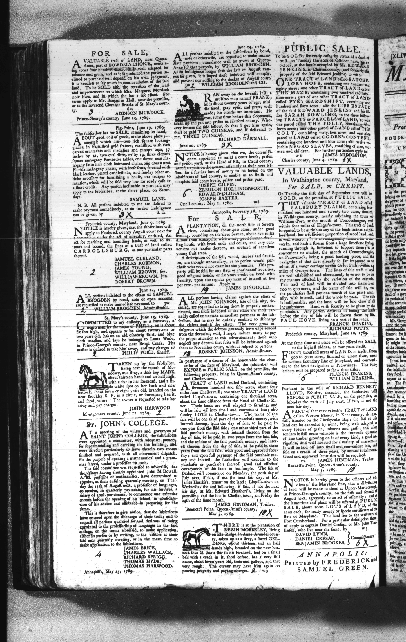 Maryland Gazette Collection (MSA SC 2731) July 5, 1787 - December 25, 1794 M 1284 A Publication of the Archives of Maryland Online Image No: 482 Enlarge and print image (2M) |