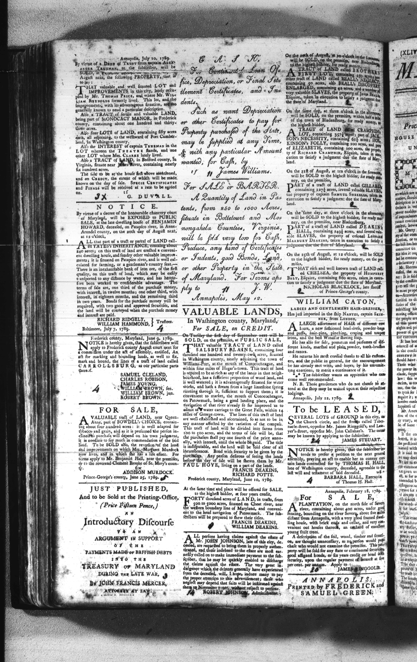 Maryland Gazette Collection (MSA SC 2731) July 5, 1787 - December 25, 1794 M 1284 A Publication of the Archives of Maryland Online Image No: 490 Enlarge and print image (2M) |