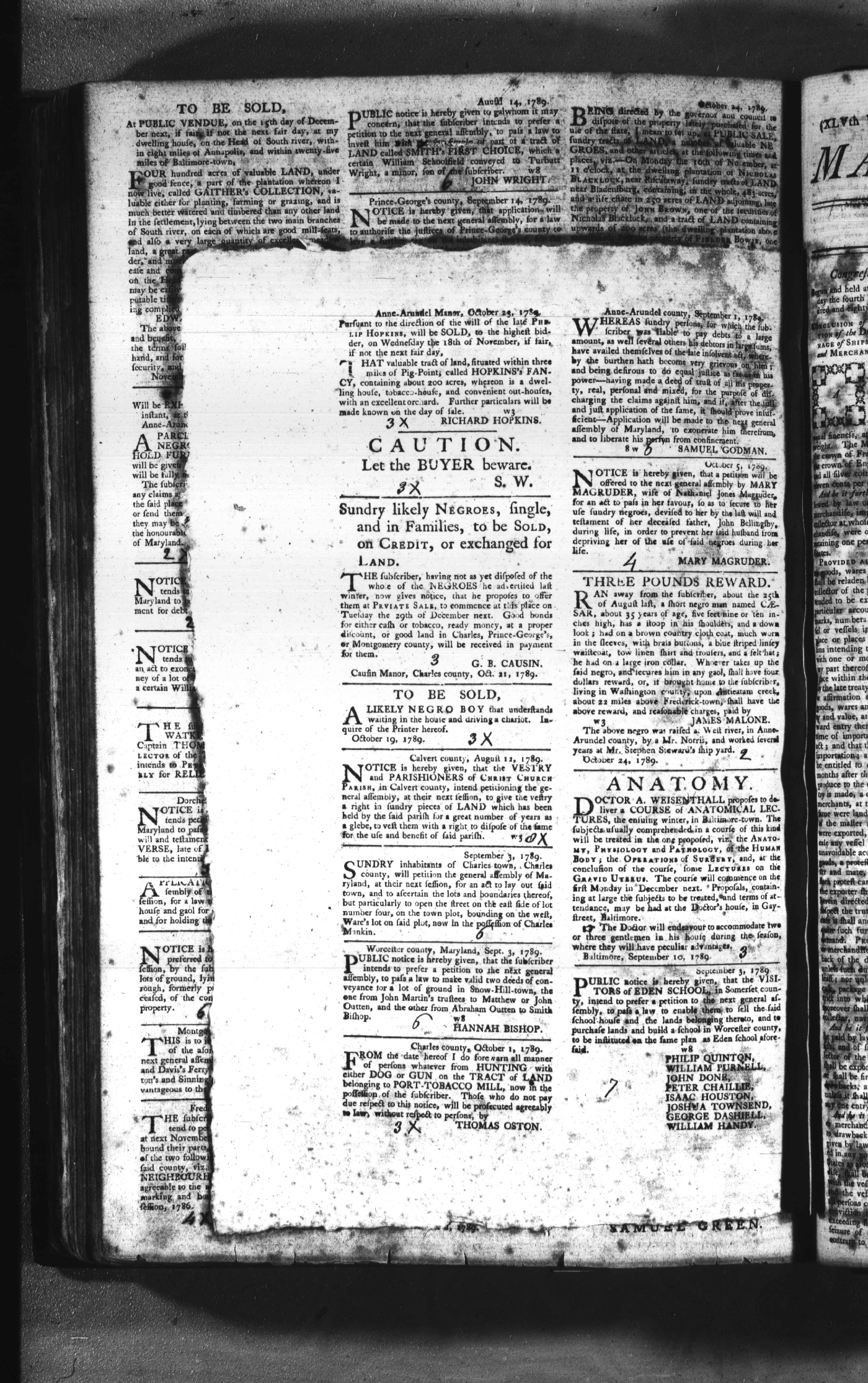 Maryland Gazette Collection (MSA SC 2731) July 5, 1787 - December 25, 1794 M 1284 A Publication of the Archives of Maryland Online Image No: 556 Enlarge and print image (1M) |
