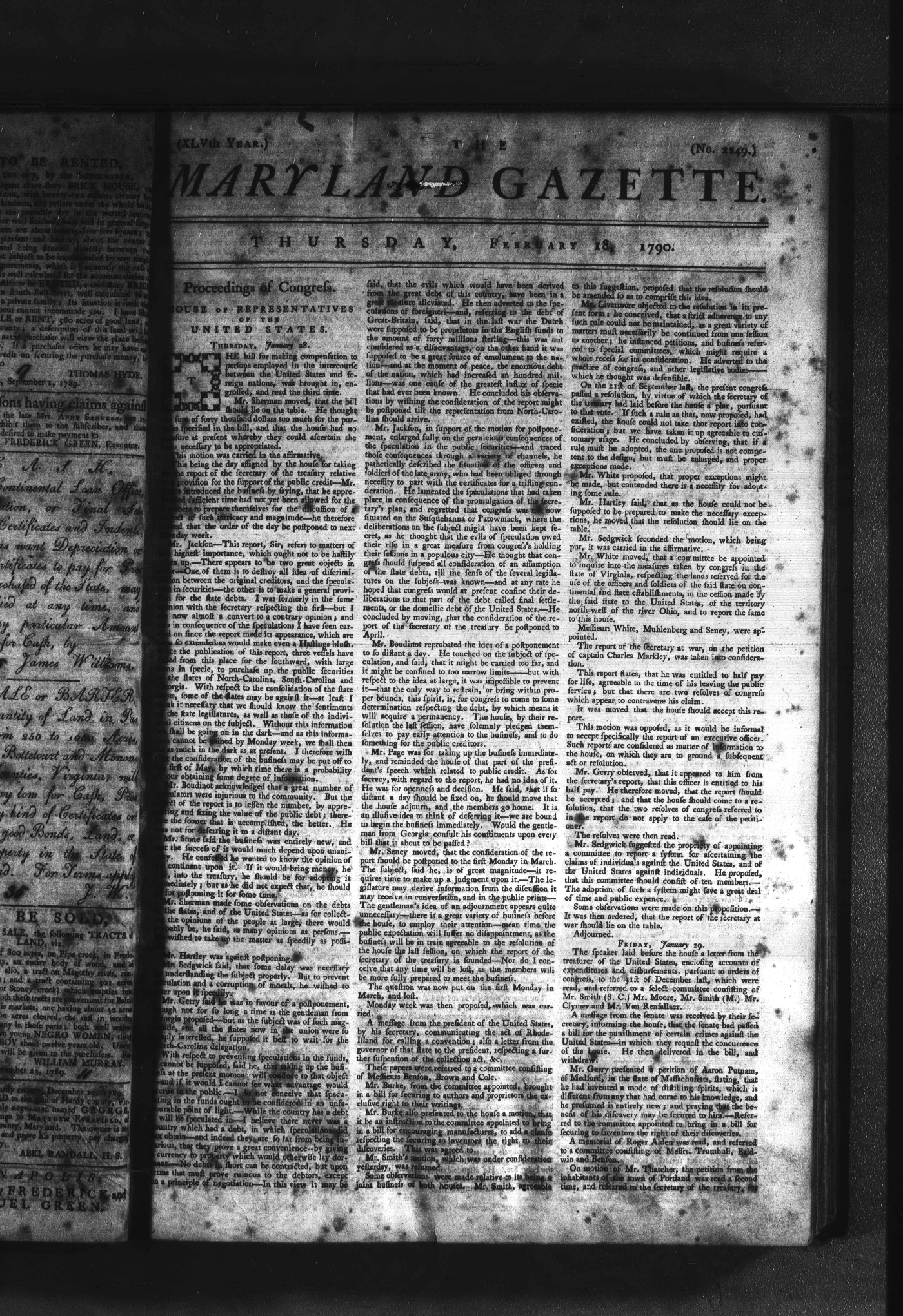 Maryland Gazette Collection (MSA SC 2731) July 5, 1787 - December 25, 1794 M 1284 A Publication of the Archives of Maryland Online Image No: 615 Enlarge and print image (2M) |