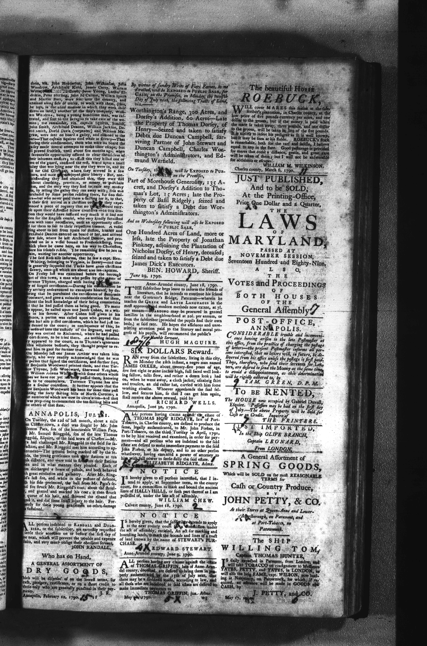 Maryland Gazette Collection (MSA SC 2731) July 5, 1787 - December 25, 1794 M 1284 A Publication of the Archives of Maryland Online Image No: 697 Enlarge and print image (2M) |