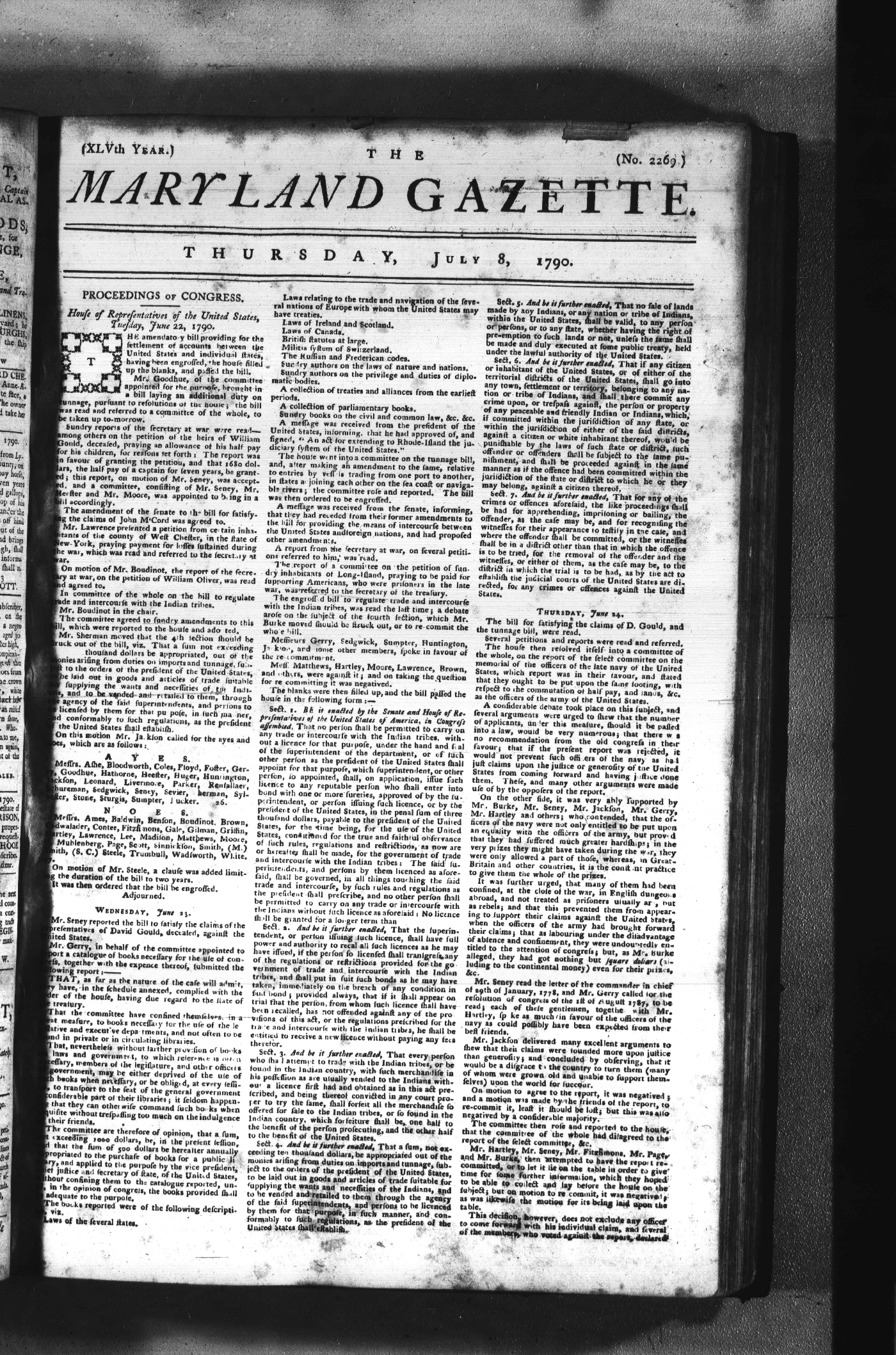 Maryland Gazette Collection (MSA SC 2731) July 5, 1787 - December 25, 1794 M 1284 A Publication of the Archives of Maryland Online Image No: 699 Enlarge and print image (2M) |