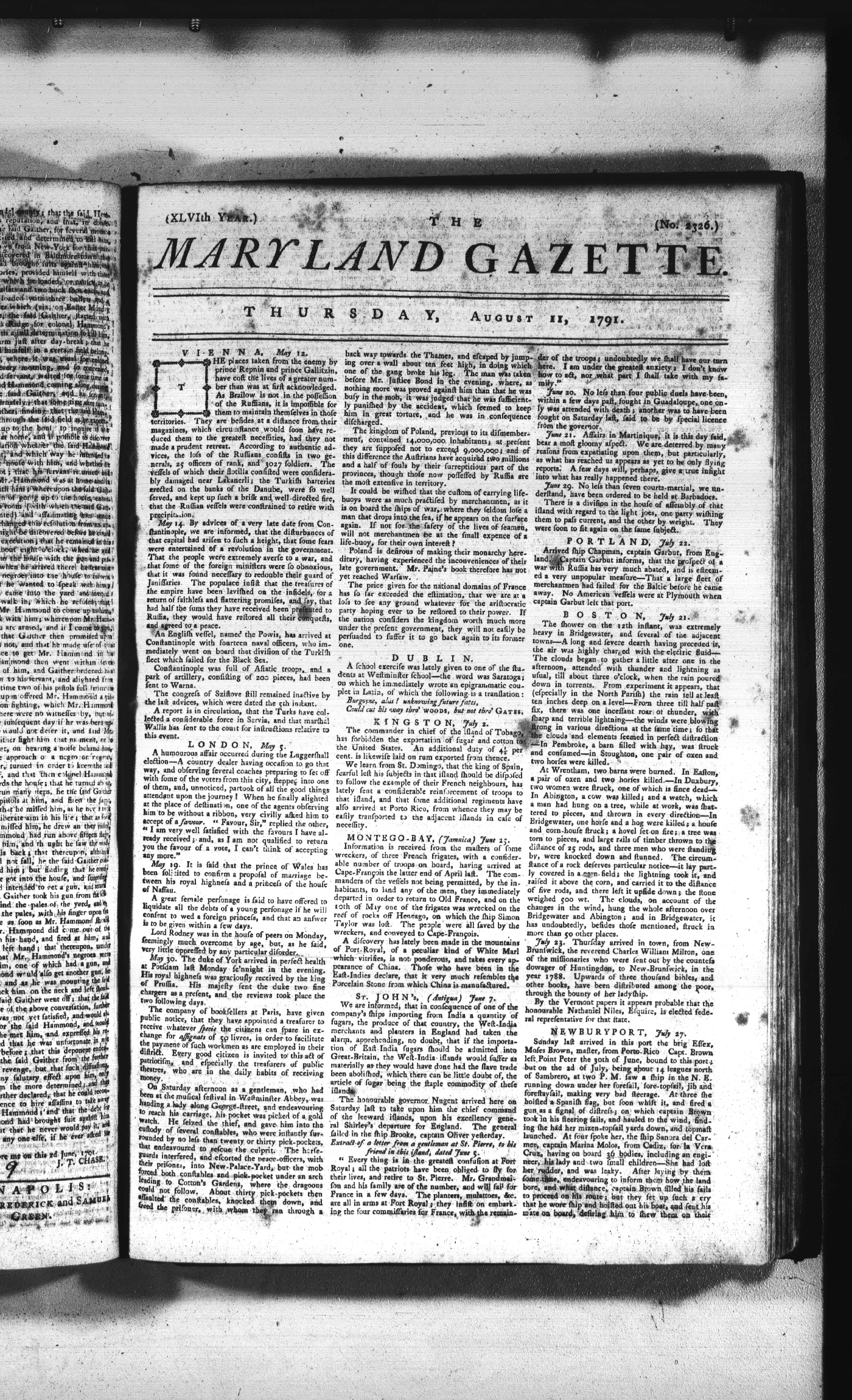 Maryland Gazette Collection (MSA SC 2731) July 5, 1787 - December 25, 1794 M 1284 A Publication of the Archives of Maryland Online Image No: 941 Enlarge and print image (3M) |