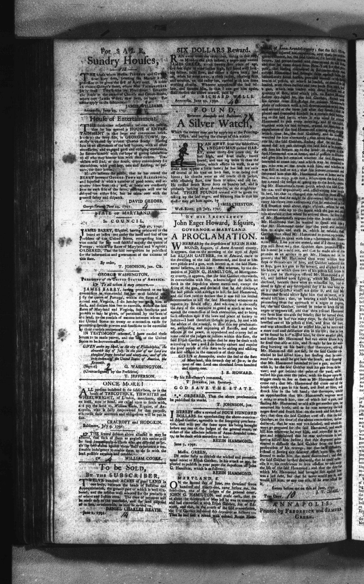 Maryland Gazette Collection (MSA SC 2731) July 5, 1787 - December 25, 1794 M 1284 A Publication of the Archives of Maryland Online Image No: 946 Enlarge and print image (2M) |