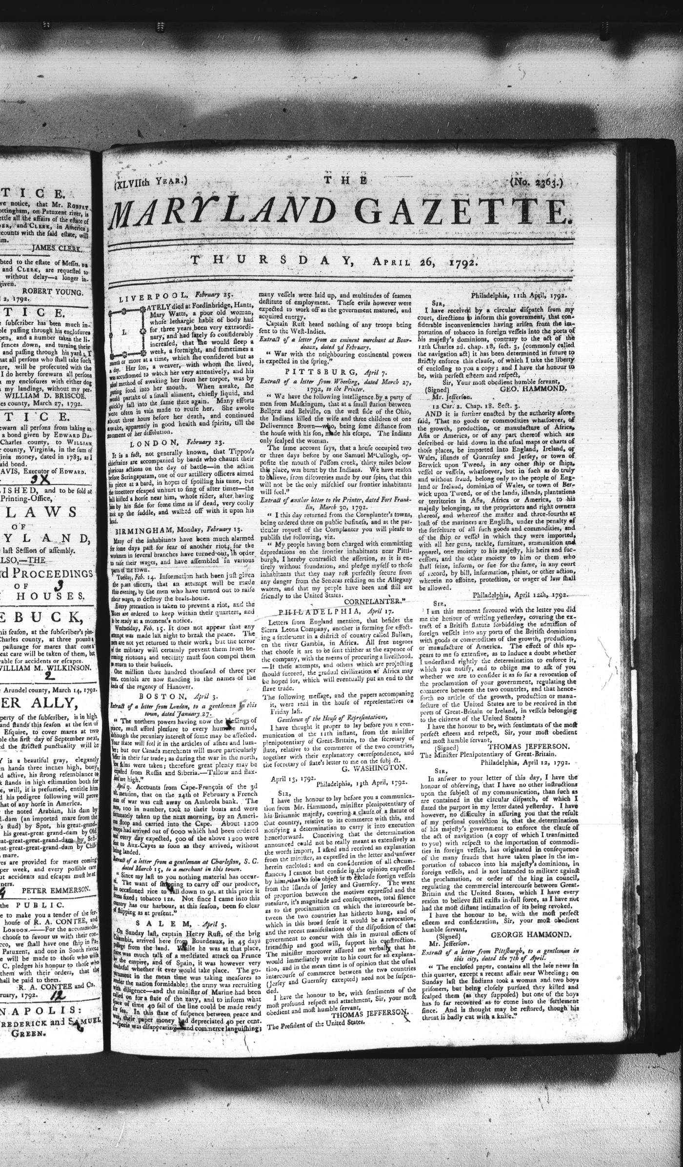 Maryland Gazette Collection (MSA SC 2731) July 5, 1787 - December 25, 1794 M 1284 A Publication of the Archives of Maryland Online Image No: 1093 Enlarge and print image (2M) |