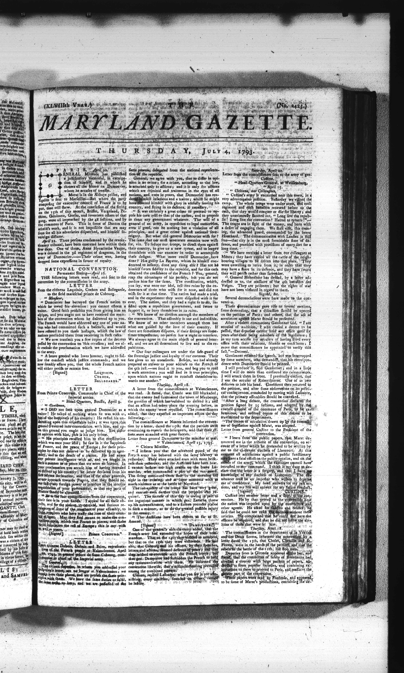 Maryland Gazette Collection (MSA SC 2731) July 5, 1787 - December 25, 1794 M 1284 A Publication of the Archives of Maryland Online Image No: 1365 Enlarge and print image (3M) |