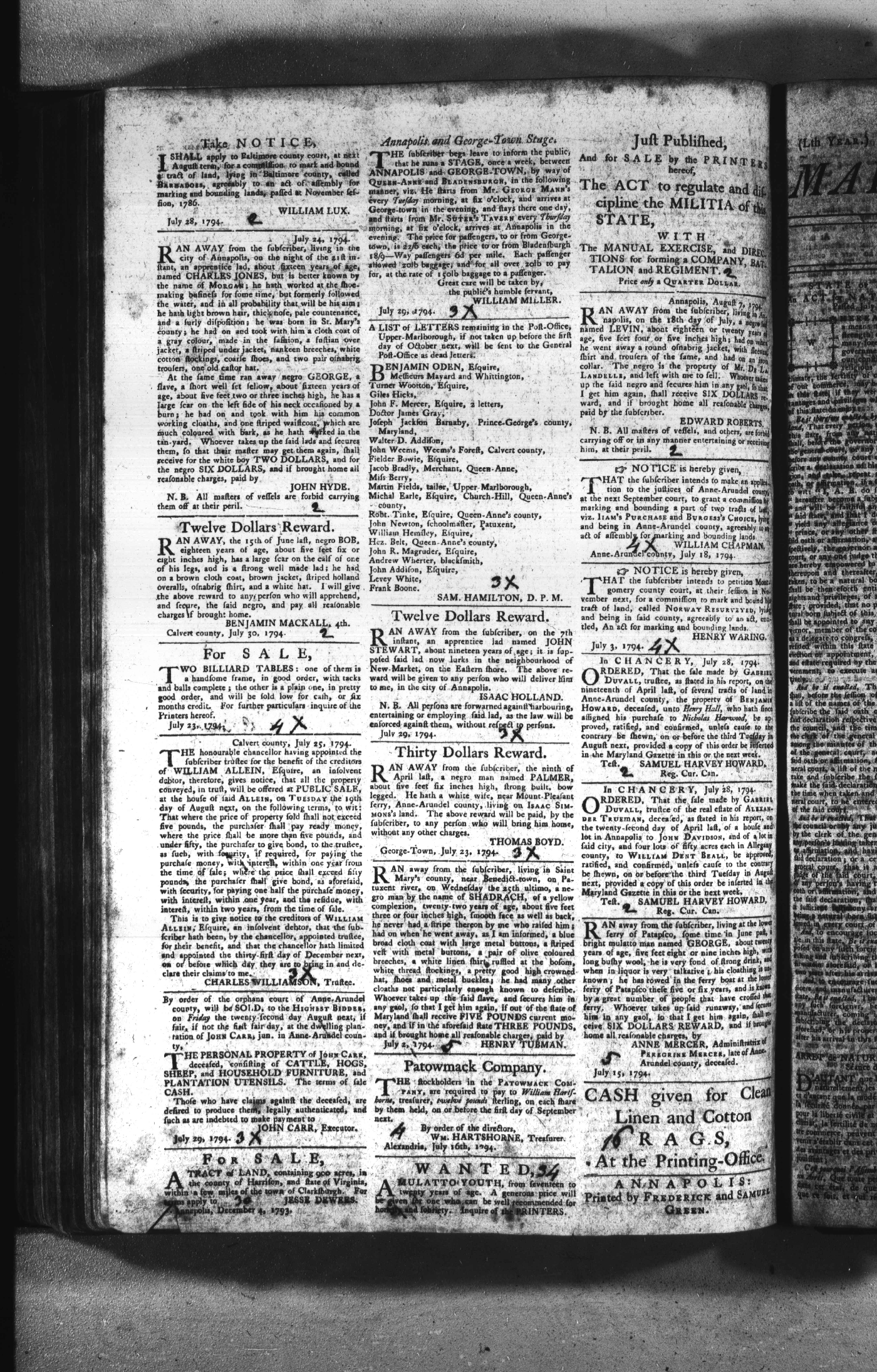 Maryland Gazette Collection (MSA SC 2731) July 5, 1787 - December 25, 1794 M 1284 A Publication of the Archives of Maryland Online Image No: 1628 Enlarge and print image (2M) |