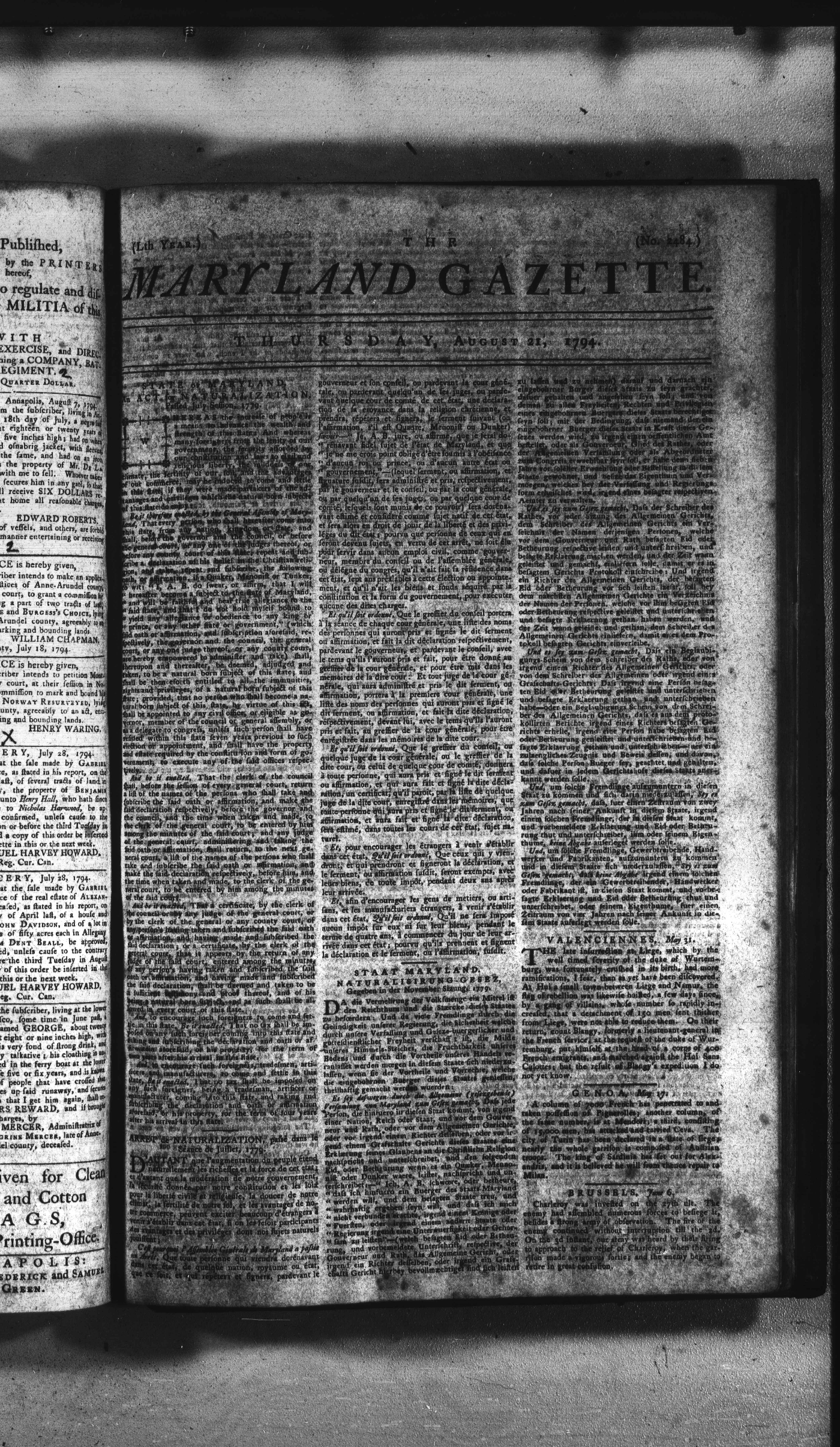 Maryland Gazette Collection (MSA SC 2731) July 5, 1787 - December 25, 1794 M 1284 A Publication of the Archives of Maryland Online Image No: 1629 Enlarge and print image (3M) |
