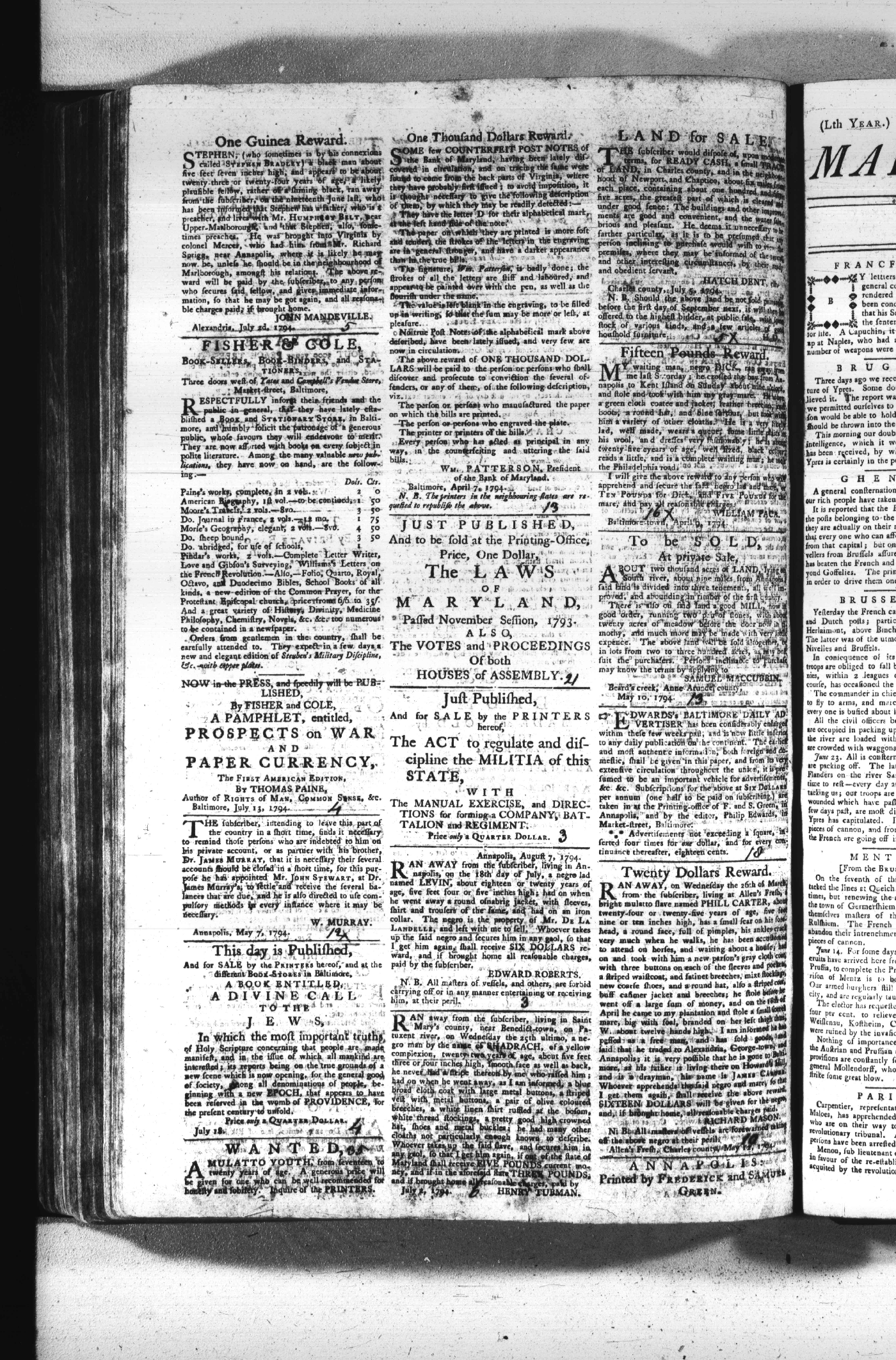 Maryland Gazette Collection (MSA SC 2731) July 5, 1787 - December 25, 1794 M 1284 A Publication of the Archives of Maryland Online Image No: 1634 Enlarge and print image (2M) |
