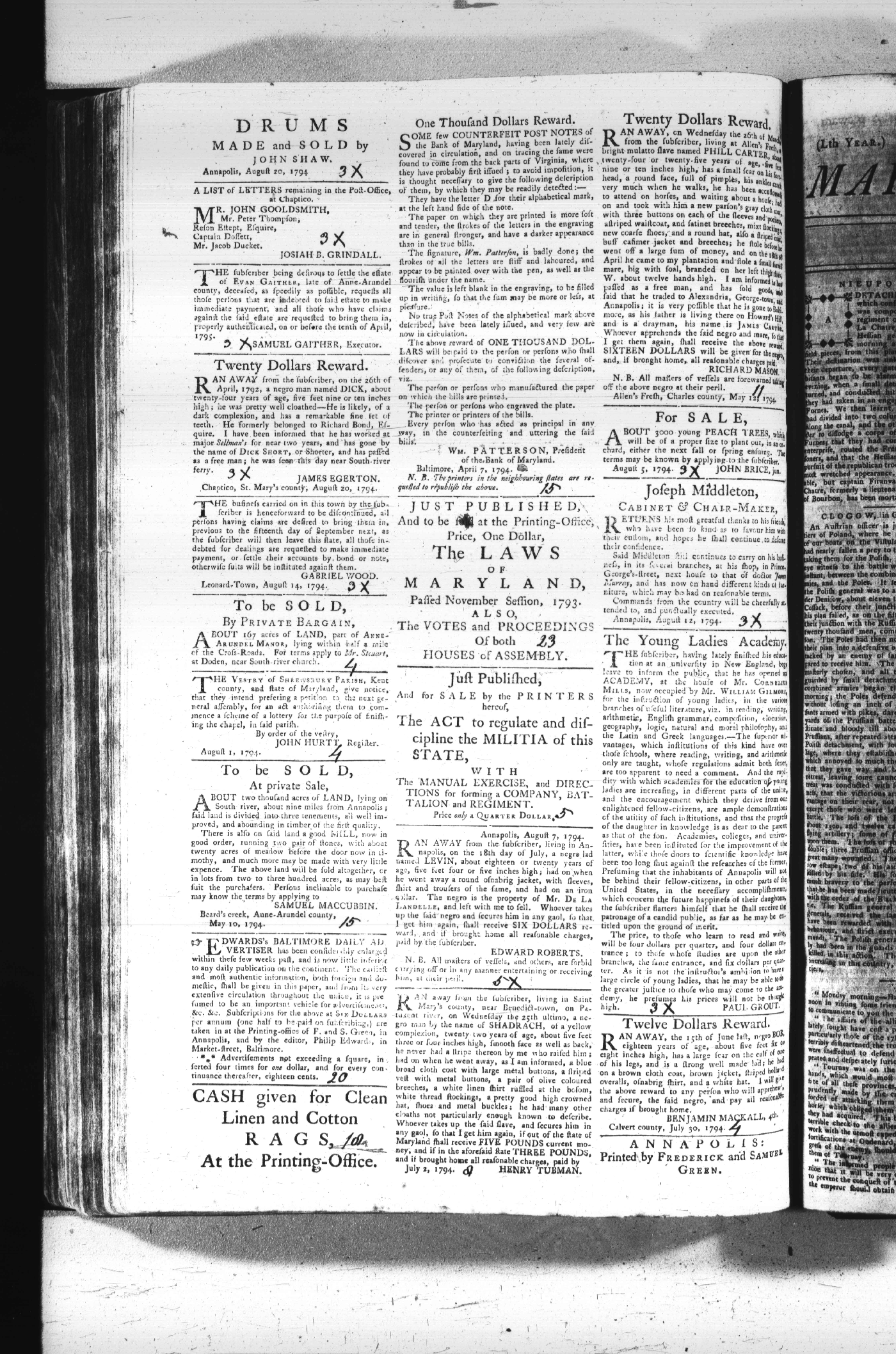 Maryland Gazette Collection (MSA SC 2731) July 5, 1787 - December 25, 1794 M 1284 A Publication of the Archives of Maryland Online Image No: 1644 Enlarge and print image (2M) |