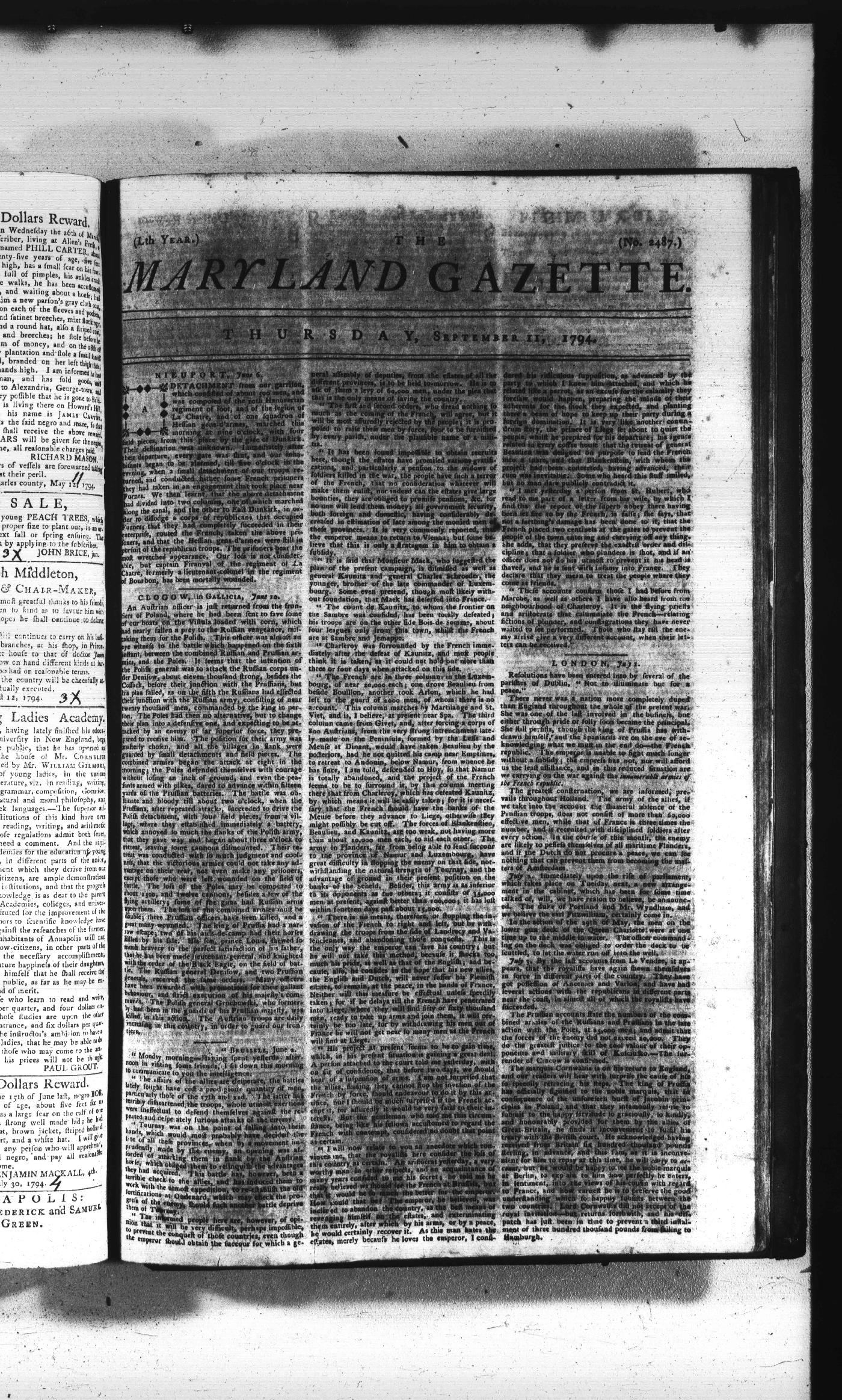 Maryland Gazette Collection (MSA SC 2731) July 5, 1787 - December 25, 1794 M 1284 A Publication of the Archives of Maryland Online Image No: 1645 Enlarge and print image (3M) |