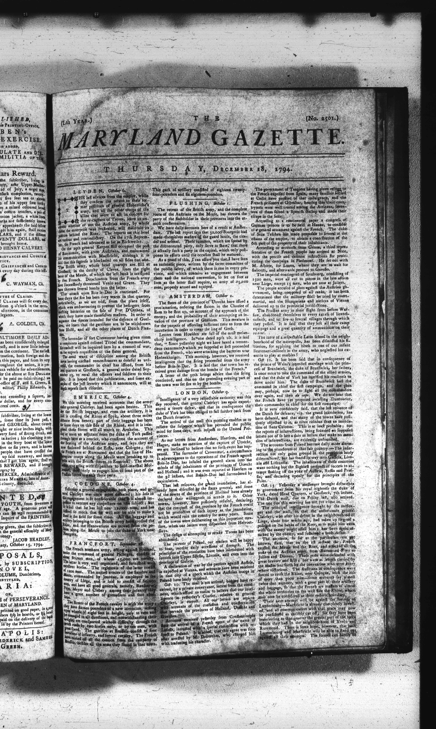 Maryland Gazette Collection (MSA SC 2731) July 5, 1787 - December 25, 1794 M 1284 A Publication of the Archives of Maryland Online Image No: 1707 Enlarge and print image (3M) |