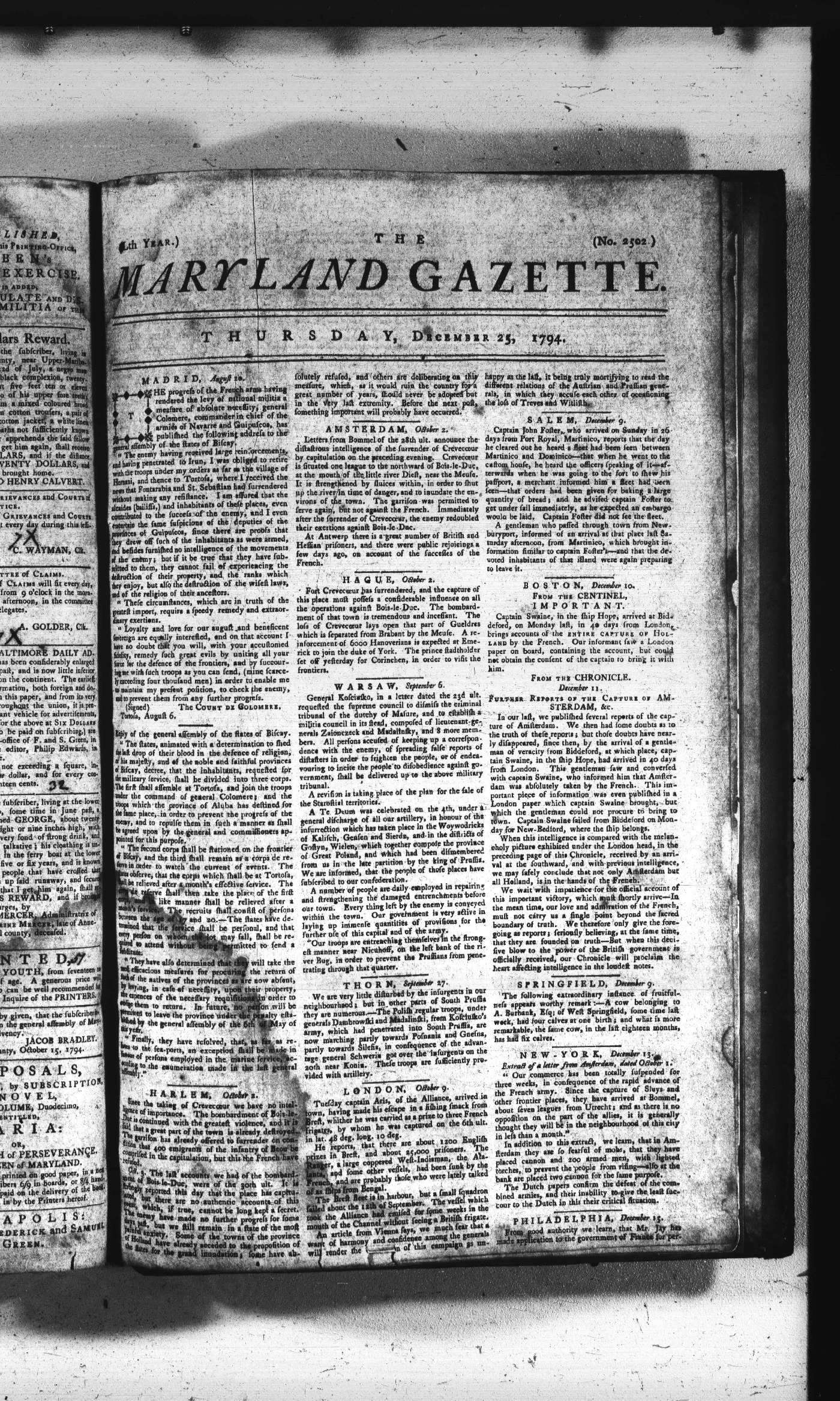 Maryland Gazette Collection (MSA SC 2731) July 5, 1787 - December 25, 1794 M 1284 A Publication of the Archives of Maryland Online Image No: 1711 Enlarge and print image (3M) |