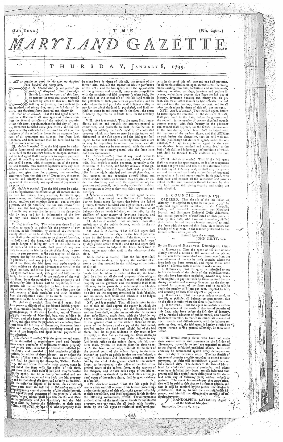 Maryland Gazette Collection MSA SC 2731 January 1, 1795 - December 29, 1803 M 1285 A Publication of the Archives of Maryland Online Image No: 5 Enlarge and print image (3M) |
