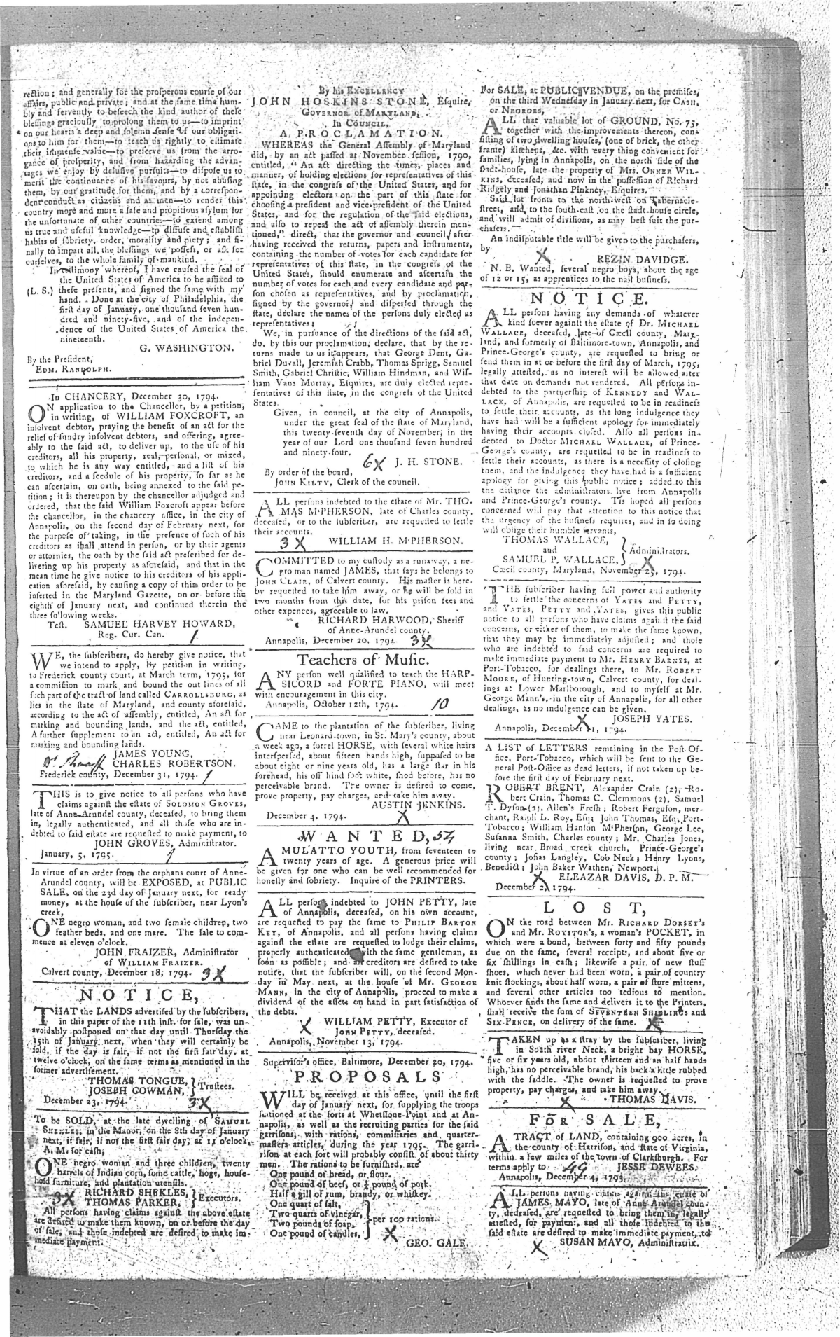 Maryland Gazette Collection MSA SC 2731 January 1, 1795 - December 29, 1803 M 1285 A Publication of the Archives of Maryland Online Image No: 7 Enlarge and print image (2M) |