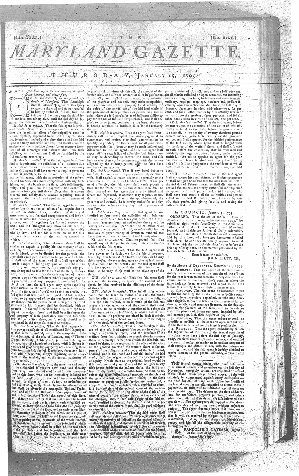 Maryland Gazette Collection MSA SC 2731 January 1, 1795 - December 29, 1803 M 1285 A Publication of the Archives of Maryland Online Image No: 9 Enlarge and print image (3M) |