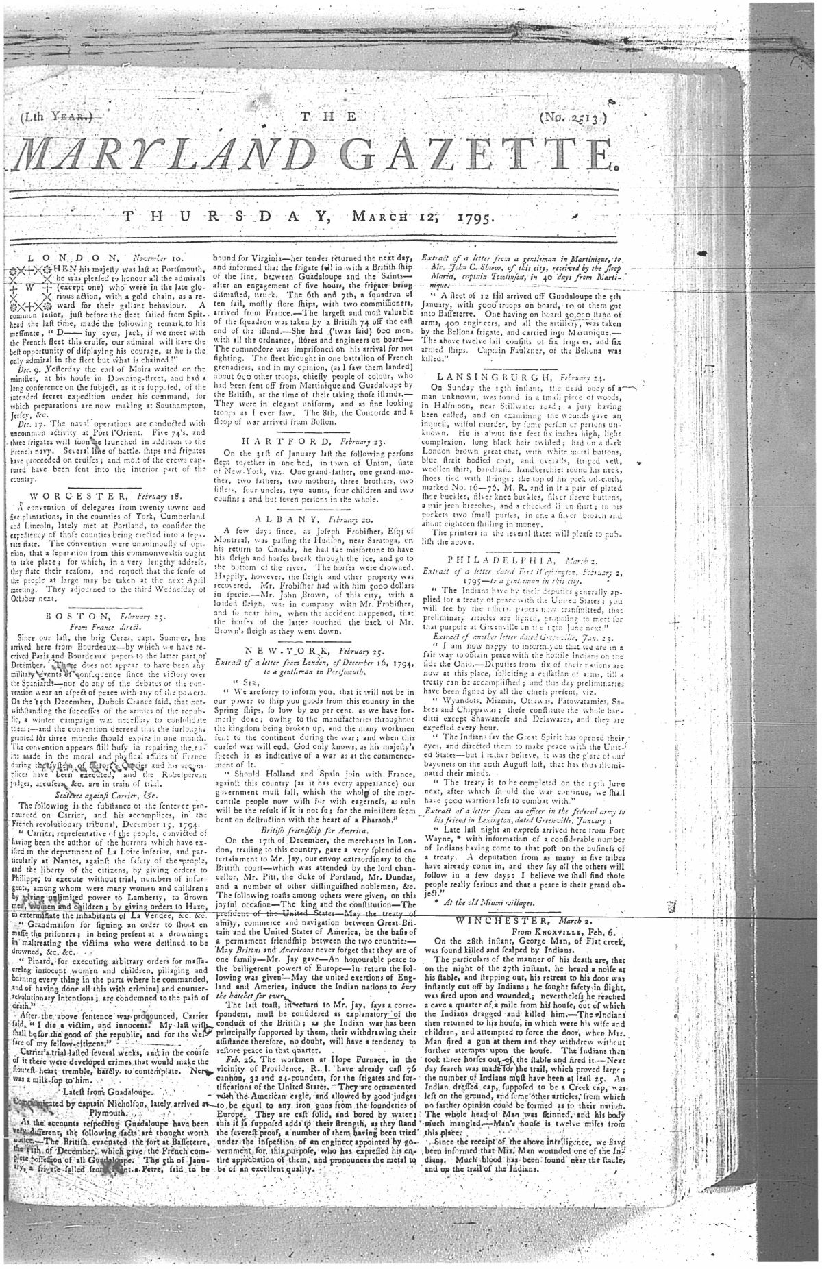 Maryland Gazette Collection MSA SC 2731 January 1, 1795 - December 29, 1803 M 1285 A Publication of the Archives of Maryland Online Image No: 45 Enlarge and print image (2M) |
