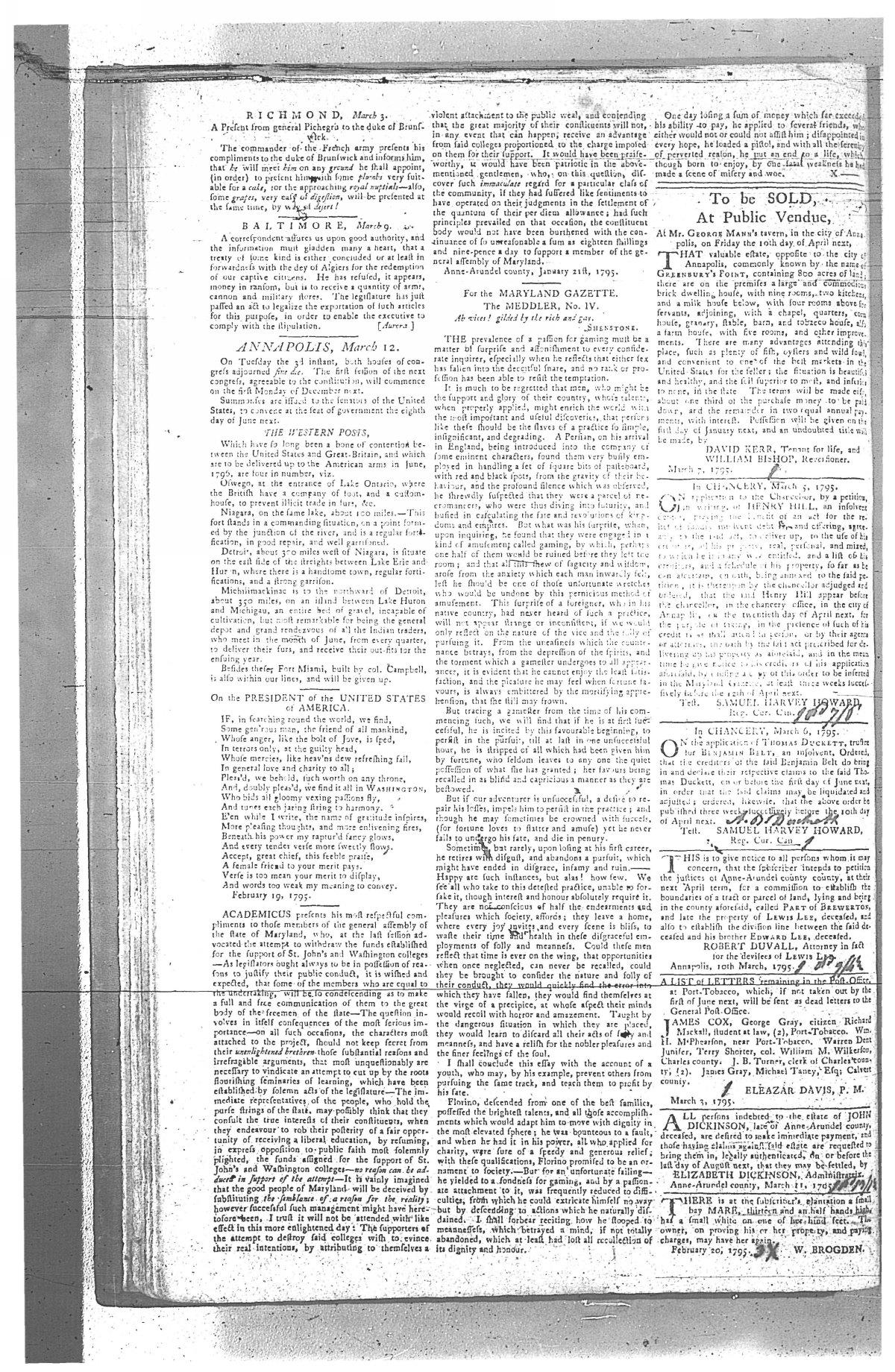 Maryland Gazette Collection MSA SC 2731 January 1, 1795 - December 29, 1803 M 1285 A Publication of the Archives of Maryland Online Image No: 46 Enlarge and print image (3M) |