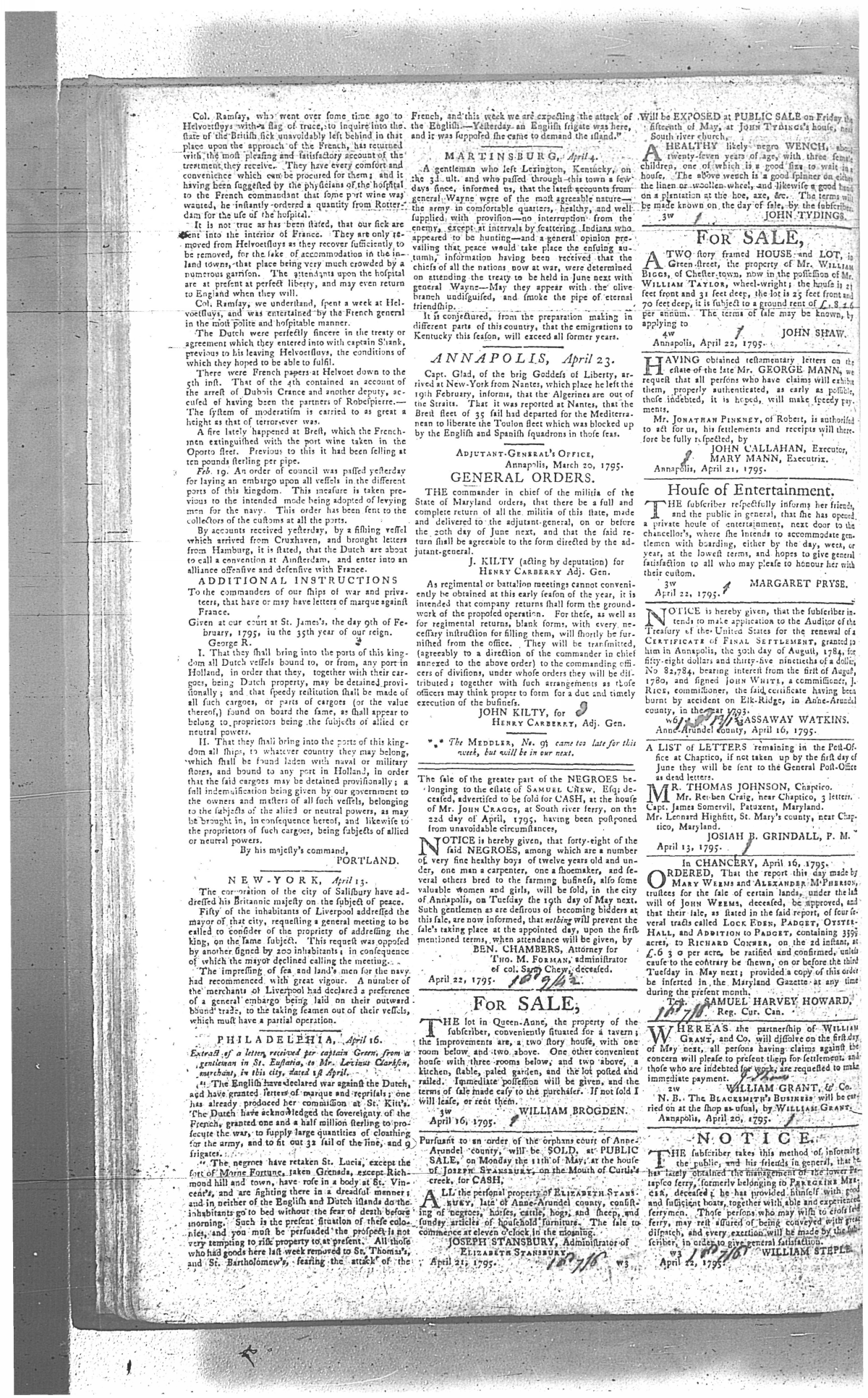 Maryland Gazette Collection MSA SC 2731 January 1, 1795 - December 29, 1803 M 1285 A Publication of the Archives of Maryland Online Image No: 72 Enlarge and print image (3M) |